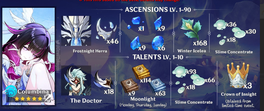 Челы, расскажите какие ресы надо на Колумбину префармить и коротко об ее скиллах расскажите! Сейчас как прокачаю Мизуки до 90го, пойду наконец префармить!