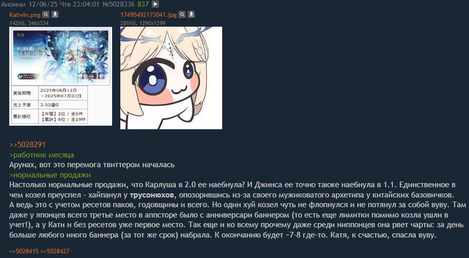 Ну чёт хз ребята, ахуй и синема уже не вставляет, локация максимально унылая, огромные полупустые пространства, мотоцикл сделан плохо, езда не чувствуется, как будто на лодке плывешь а не едешь, звука мотора нет, все новые активности на картах душные и неинтересные, чё то я всё походу, а 8 по счёту проебанный флип окончательно поставил точку, единственное что держало в игре это красивые персонажи но с таким анлаком наряжать всех даже с0 уже невозможно. Попробую попытать удачу в ушках, а если и они не зайдут то окончательно дропну гачи.надеюсь