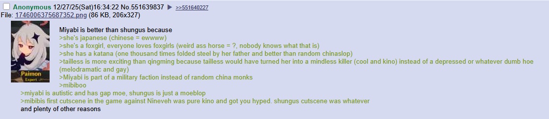 Представьте, что в условный ЛaДС добавляют телку-нпц и когда она появляется в сюжете, то все кей-поперы оборачиваются и говорят че-то в духе: "Блять, вот это телка, ты видела?" "Я бы трахал такую не слезая от рассвета до заката!" "Ты видела какие у нее огромные сиськи и сочный попик? Небось себе хотела бы такой же, да? А вот хуй, празднуй, паймонь!" Ебало гёл-геймеров, донатящих всю пенсию по шизе имагнули?