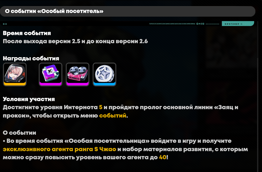 • Начиная с версии 2.5, если вы получите агента ранга S в 8-й раз или более, то помимо отголосков волшебная палочкала ×100 вы также получите особое приглашение ×1. • Если до выхода версии 2.5 вы уже получали одного и того же агента ранга S 8 или более раз, после обновления особые приглашения будут отправлены вам по почте. • Помимо участия во временном событии «По заявкам зрителей», центральные чипы амплификатора сейчас также можно получить в Фонде Риду или при обмене чипов амплификаторов (60 чипов амплификаторов можно обменять на 1 центральный чип амплификатора). • Начиная с версии 2.5, при разборе амплификаторов ранга A (Шестая улица → Магазин игрушек → Утилизировать амплификатор / Склад → Склад амплификаторов → Утилизировать амплификатор), прокси будет получать чипы амплификаторов соответствующего уровня. (Например, за разборку амплификатора «Бумагорезка» 3-го уровня вы получите 3 чипа амплификаторов.) • Если до версии 2.5 вы уже разбирали амплификаторы ранга A выше 1-го уровня в меню «Шестая улица → Магазин игрушек — Утилизировать амплификатор» или «Склад → Склад амплификаторов → Утилизировать амплификатор», то после выхода версии 2.5 до 31.12.2025 23:59 (UTC+8) вам придёт письмо с компенсацией — вы получите чипы амплификаторов в соответствии с историей утилизации соответствующих амплификаторов. (Например: если до версии 2.5 вы разобрали 10 амплификаторов «Бумагорезка» 3-го уровня, то получите по почте 20 чипов амплификаторов.)