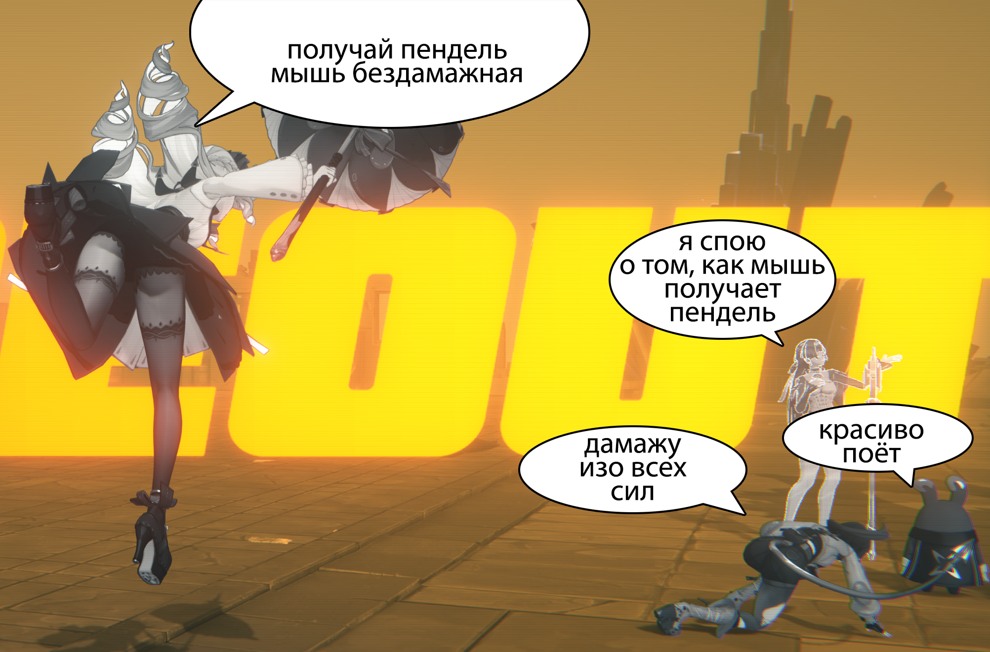 >>6114828 Референс, отсылка на "Гачиаккуту" метаирония от разрабов. Близнецы сошедние из верхнего города, в нижний в помойку где время крыс никогда не заканчивается.