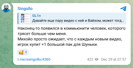 >>6115136 >>6115137 >>6115144 Достаточно посмотреть на юпупе как хотя бы ту же Е Шангину разрабатывали, по факту это серьёзные затраты, микрочел в соло даже за много лет не сможет просто такие же анимации сделать, даже чтоб она тупо в пустой комнате двигалась, гача даёт возможность не смотреть 50+ часов на одну и ту же жопу, как в дерьмаке или даже Ниер:Автомате, а перс - это почти половина игры порой, вспомнить ту же Лару Крофт. Сейчас там самой гачи не так и много, если ты не лудоман, который каждый день крутит на всё, а так с гарантами не так и много сюрпризов получается. Не нравятся дейлики - донать или руби 50 часов утопцев за дерьмака.