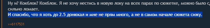 Мой любимый момент в треде, когда Писевор с размаху по ебалу напоминает щелкунчикам, что их любимая игра - это все еще нормисный общественный сортир, и начинается невероятный визг и цирковое представление в стиле "монофузио больше дамажит с бездамажной шоркой, чем с дамажным брантом!!11", "гале не нужен ее бис-саппорт мужик!11" и "какого хуя новый дд пидор мужик сосиска, МЯЯЯМ Я ЩАС НОЖКОЙ ТОПНУ". Ням-ням-ням.