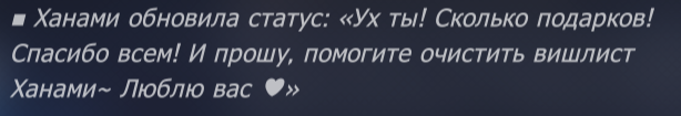 Пишет тебе один из анончиков из /hsr/ треда, что находится в разделе /gacha/. Хочу зарядить тредик новогодним настроением! Весь этот год я вел себя хорошо, крутил красивых девочек, конусы для них и даже забрал Циферку е0с1 с двух гарантов! В начале года я докрутил волшебную палочку для нашего главного Эманатора - Топаз! Дальше же я крутил персонажей Амфореуса и коллабных персонажей, забрав многих златиусов и Сейбу е2с1 с Арчером е0с1. Во время утренника главной жены Снежинки я смог получить милую жену эльфийку е0с1 и Гиацину е0, конечно я приобрел и забавную Снежинко-мемошапку! За этот год я ни разу не попадал в бан, зато постил красивые арты и забавные стикеры в Хонкай треде! В треде я весело проводил время и хочу продолжать тут общаться! Прошу подарить мне подписочку и немного новогоднего настроения! Всего хорошего и удачи в новом году!