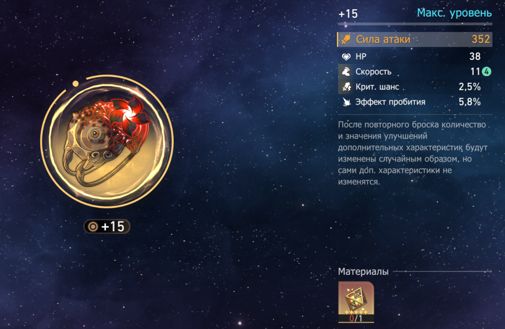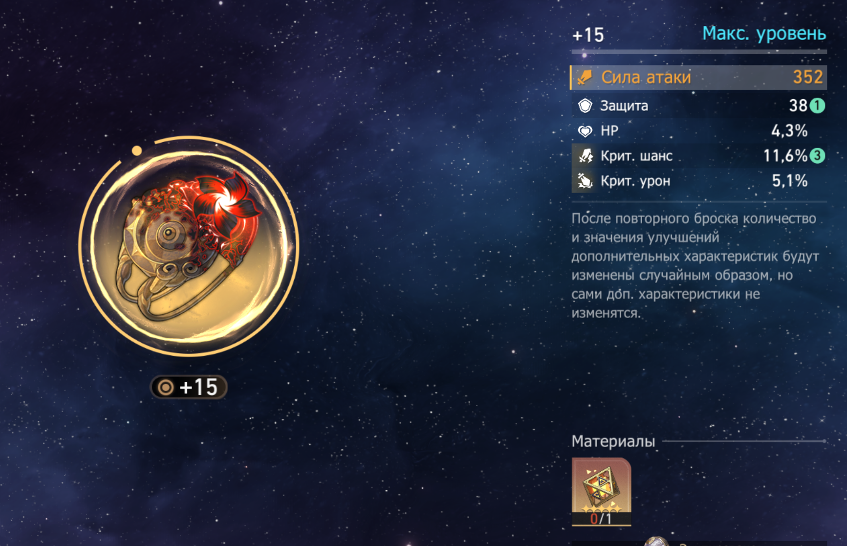 не что, по ресурсам на всех персонажей всё зафармлено, только этой параши надо штук 10 и всё, ну как раз за длинный Новый год нафармлю следующая цель нафармит на всех нужные сеты с вменяемыми статами, это намного сложнее, конечно