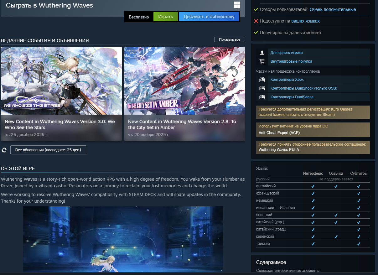 >>6129663 У меня чуть-чуть получше конфиг (7 5700Х и 4060ti), но да, в городе просаживается до 60 иногда когда камерой крутишь (я на 90 ограничиваю фпс в приложении нвидиа, там же DLAA включаю) Советую отсюда конфиг (Я под цифрой 2 использую) https://github.com/AlteriaX/WuWa-Configs На фпсы не сильно влияет, но зато лоды нормальные и никто прямо перед носом не спавнится. Ещё удали \Wuthering Waves\Client\Saved\PSO \Wuthering Waves\Client\Saved\PSOReport папки, чтобы шейдеры нормально сгенерировались (он это иногда не делает)