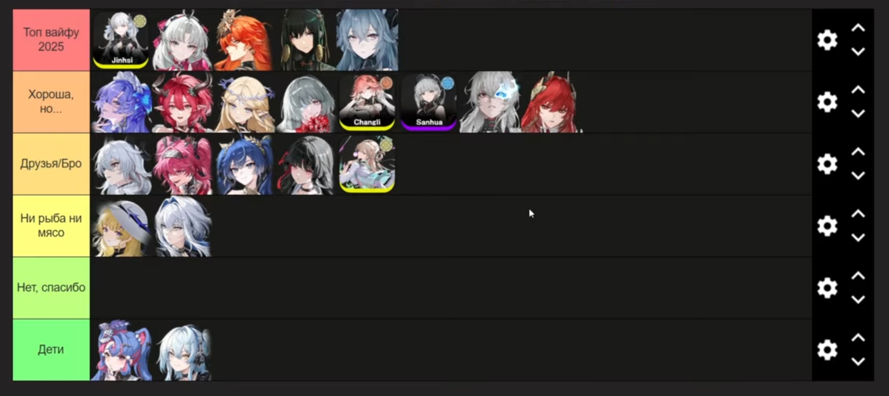 Протык Пиксель Учитель сделал тирлист вайфу 2025 Правда я не понял зачем он чуть ли не на каждом персонаже оправдывался в стиле "ну да она немного раздетая но зато красивая и сюжет мне понравился "