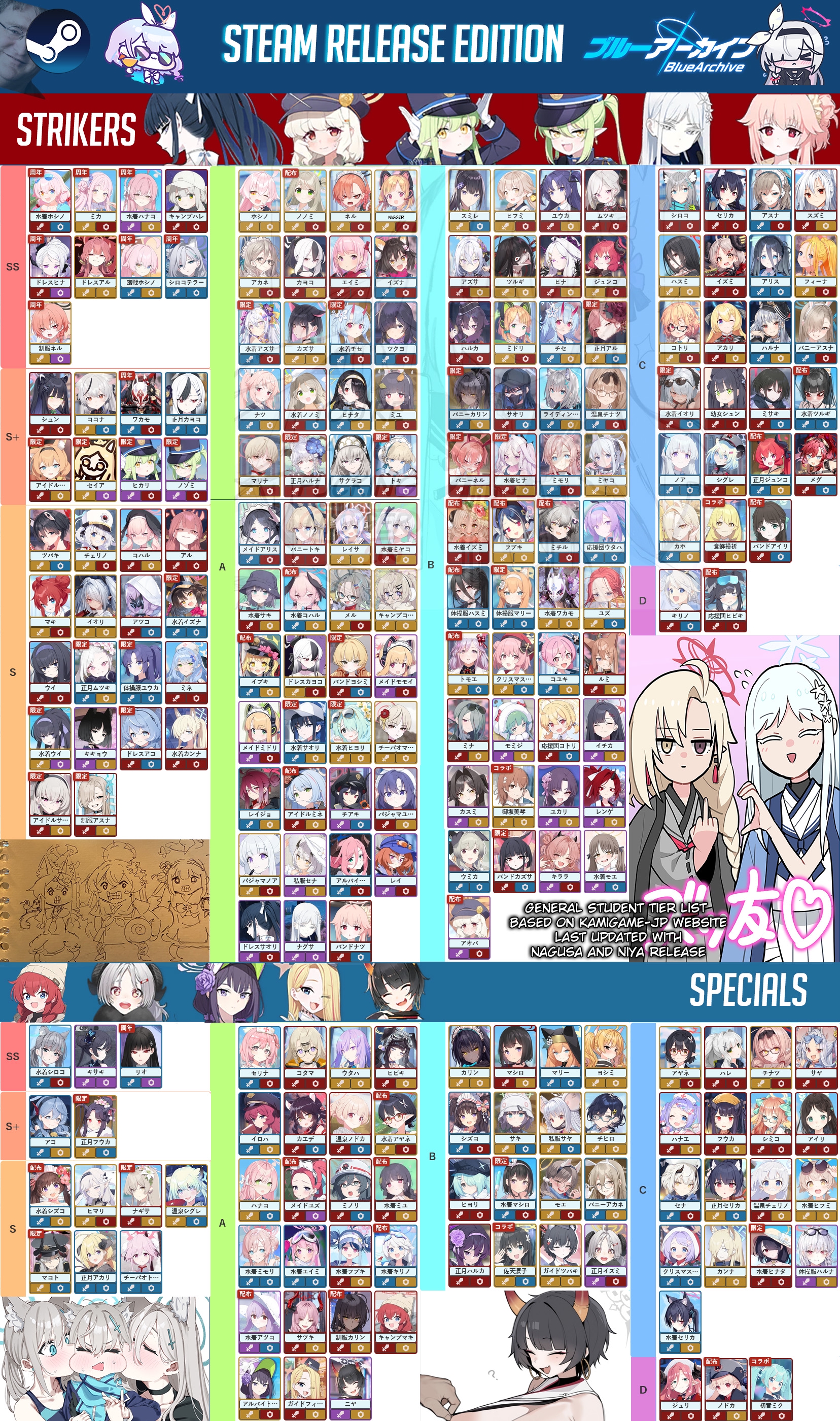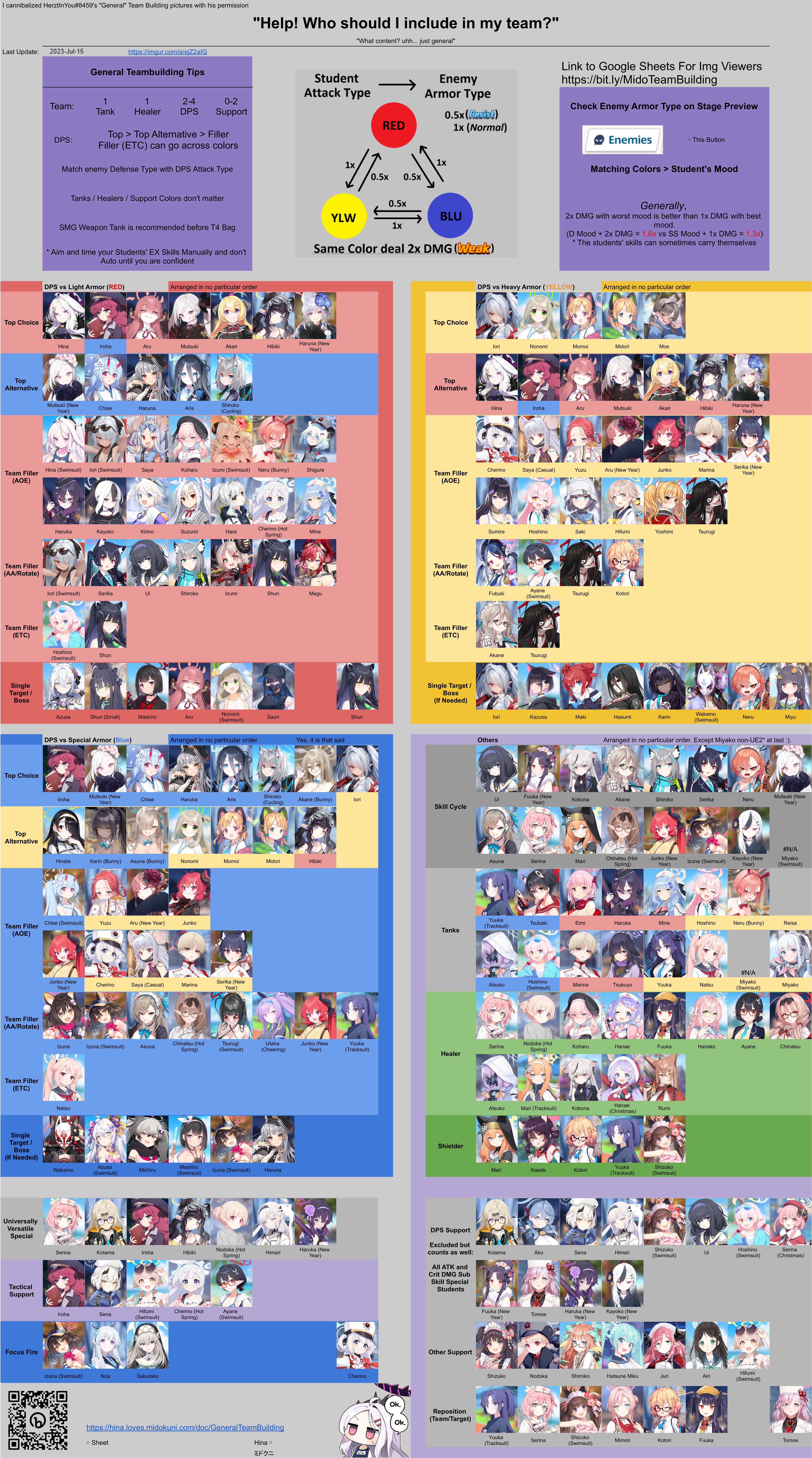 Господа, составьте 3 отряда по 6 каждого цвета, с топом (крем де ля крем, как говорят) студенток соответствующего цвета, чтобы новичку знать, кого качать. У меня закончилась экспа и теперь не могу позволить качать кого хочешь по вайфу-фактору. Канна вообще не дамажит (хуже Карин).