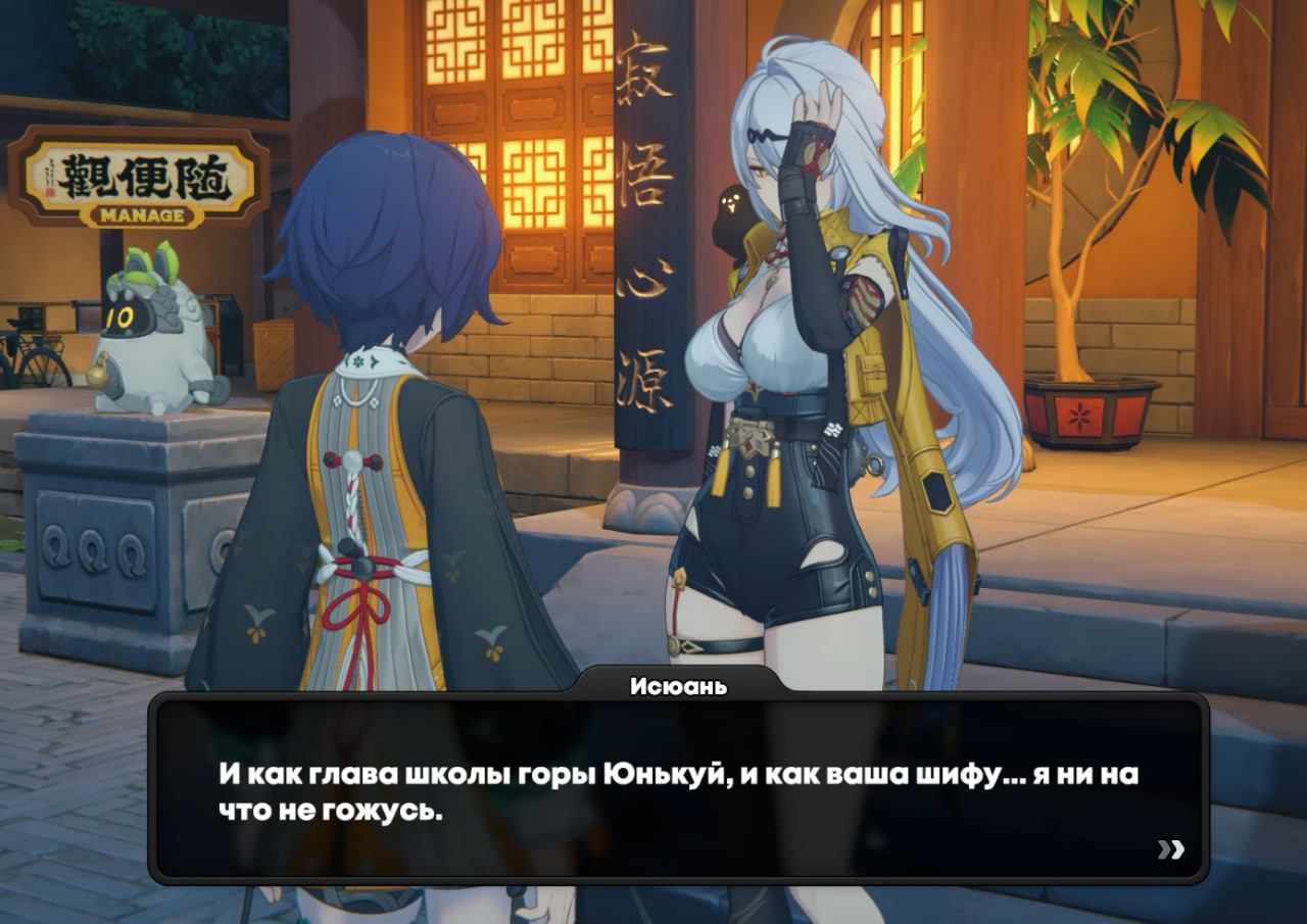 Какое же дерьмо, а не Новый год. За кой хуй вообще решили слить Исюань в жертву этому утренникному мутанту-трясогузке? Несколько Новом годуй она куда-то съебывала, а в этом еще постоянно ноет и оправдывается, а в конце так вообще в храме отсиживается, пока даже школьники из спукшака в каверне воюют.