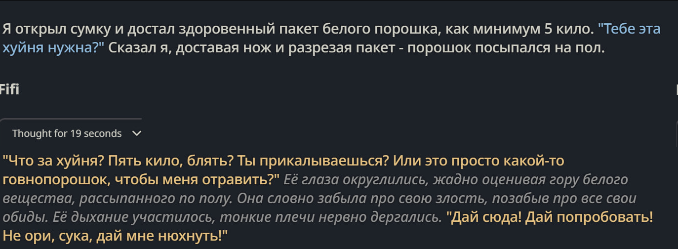>>6130316 > Насри с ошибками в контекст > аутпут тоже будет сколько я волшебству не пишу косноязычно даже не пытаясь сформулирвать мысль, просто всё подряд скопом как мысль идёт - вываливаю, с ошибками, нейронка пишет правильно, пока я не попрошу её писать вот так конкретно, как мне хочется а потом она это запомнит, и истолкует неверно мне так нейроночка даже без отыгрыша нагрубила, потому что раньше просил сгенерить текст для поста с негативом
