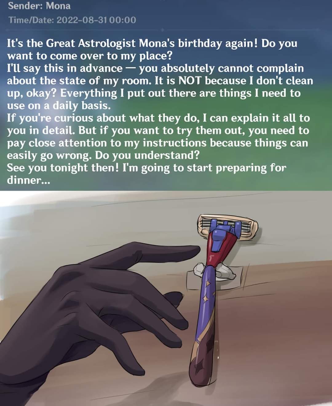 Капитан! Я слышал, что в твоём мире сейчас праздник и ты готов встретить его в кругу настоящей семьи. Мы с ребятами желаем тебе всего самого лучшего в столь радостный для тебя день. Побольше приятных и головокружительных приключений, которые обязательно приведут тебя к самым лучшим сокровищам! А также побольше тебе моры, Командир... Желаем прожить тебе с твоей Паймон самые лучшие совместные дни, ну или наконец обрести свою Паймон, если у тебя её в данный момент по какой-то причине нет.