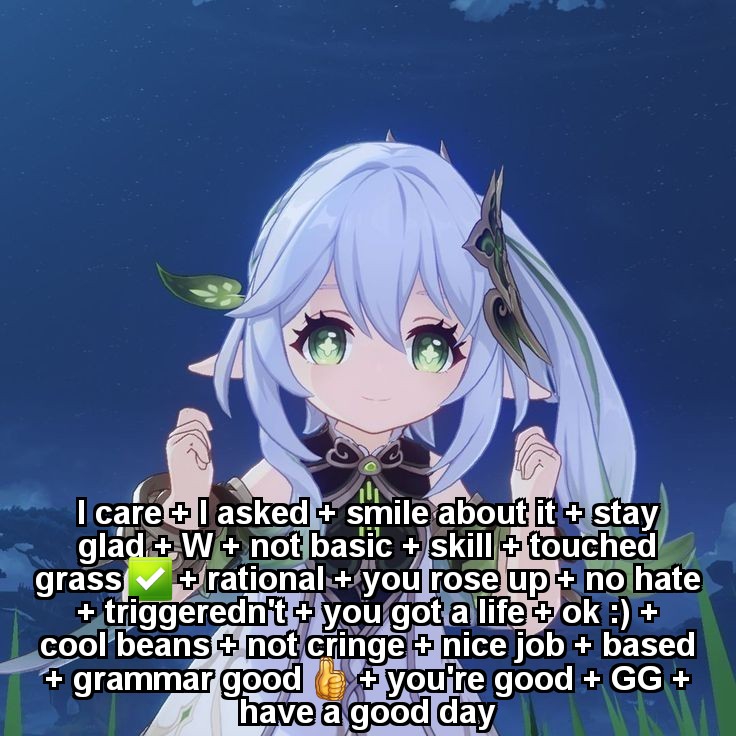 Шипперы >фапают на Кая/Сянлин, "сыночки корзинка" вроде Гань Юй дарят >ваповоз, Натлан не >хейт — там Easybreeze без >дебил-лагоз. >Потрогайте траву, не нойте о утренниках Аяки, кушайте хорошо и >путешествуйте без Паймон-спама. СЛАВА ТЕЙВАТУ!