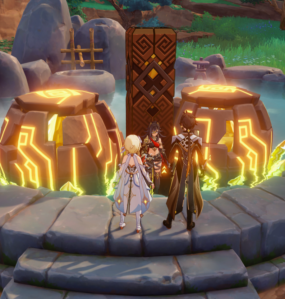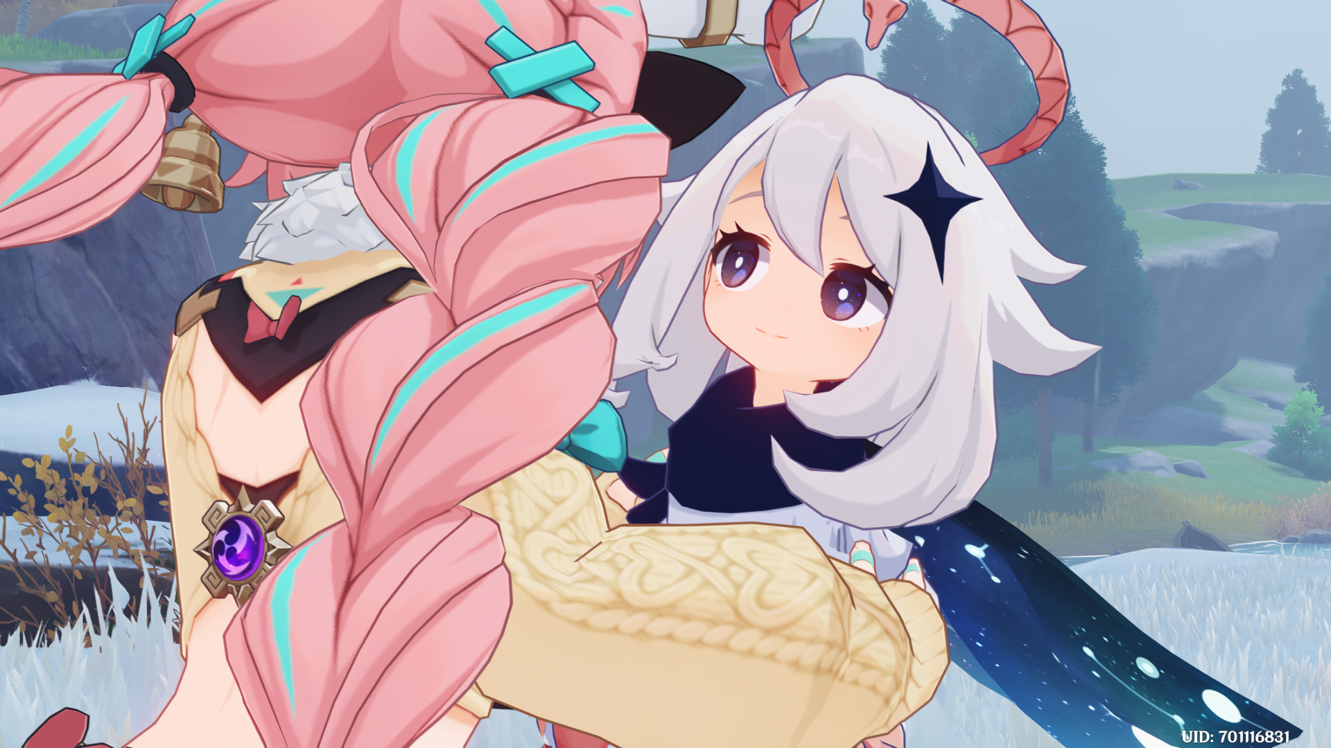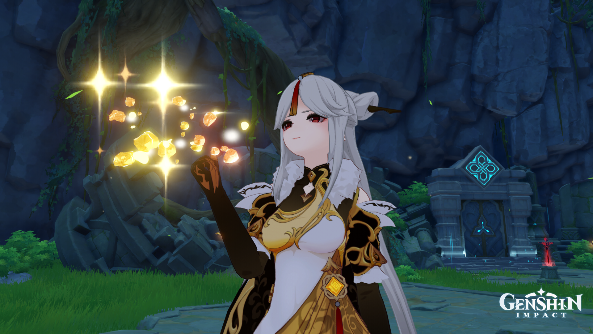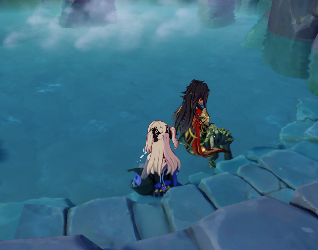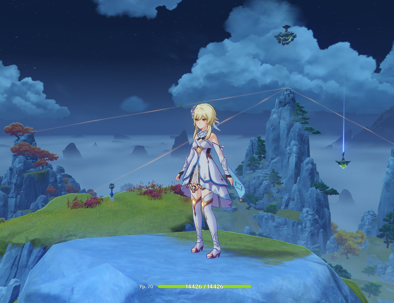 Здесь как-то в особой форме ощущаешь разницу персонажей Натлана от остальной игры. Мол, на пик этот обычно приходилось с потом и кровью (виртуальными) залезать, а тут прямо что-то с обложки метал-группы.