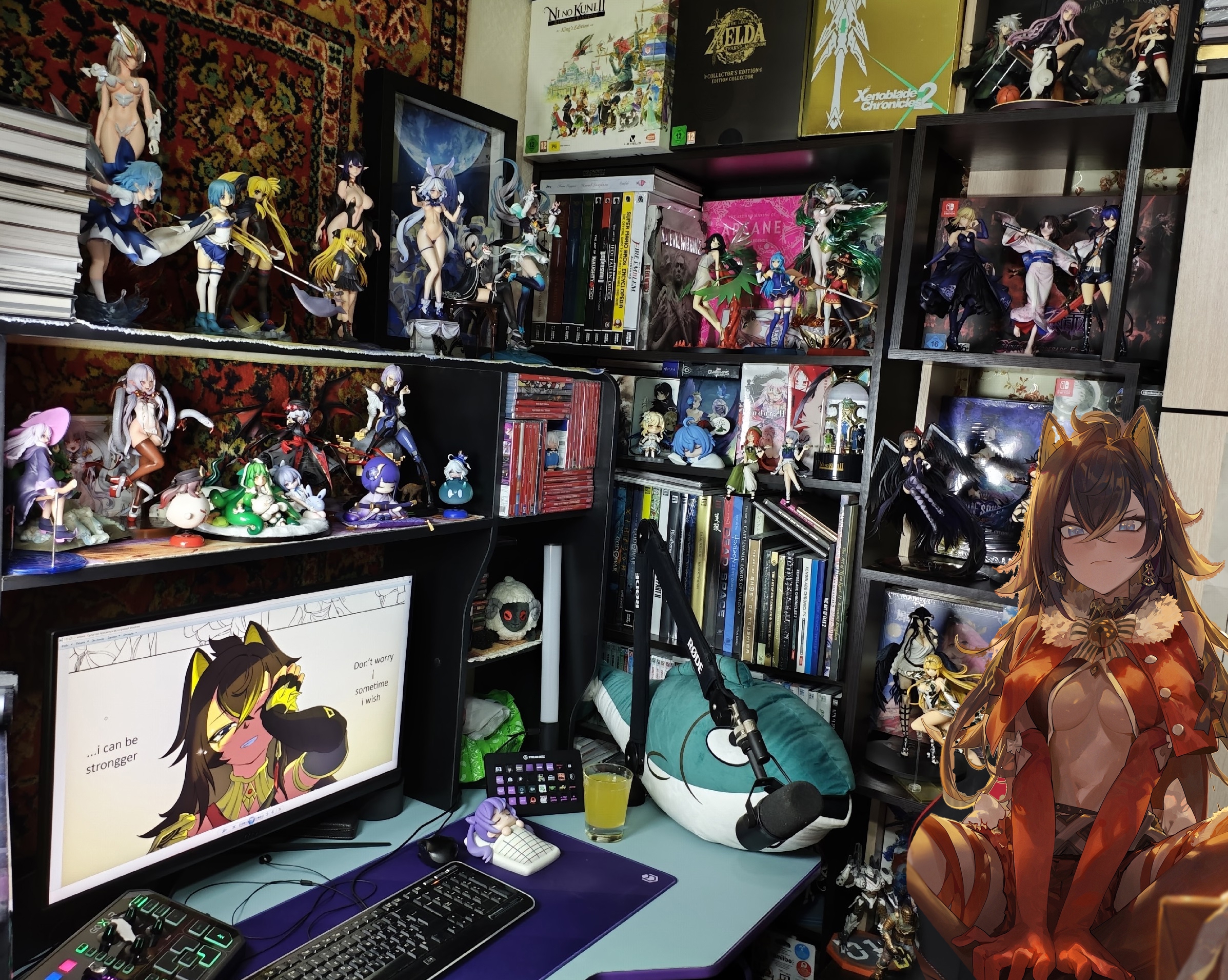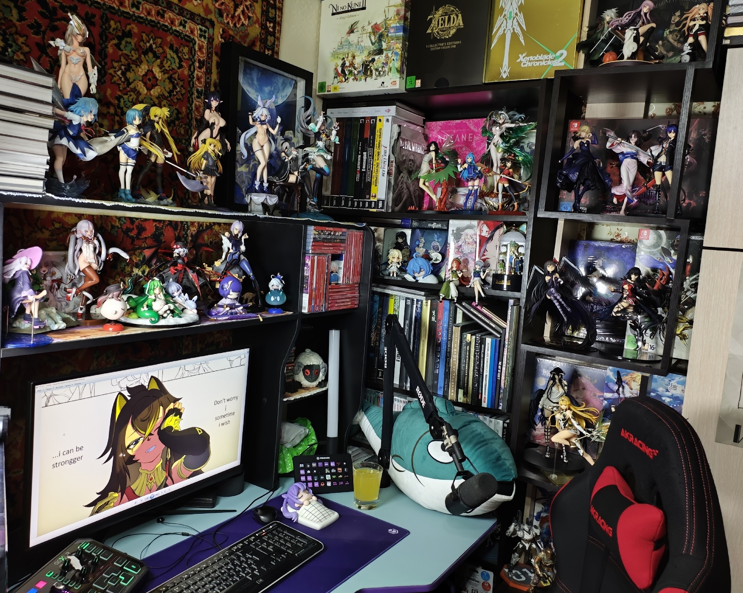 >>6132937 У местных хорошо это когда стенка обвешена плакатами с анимешными блядями а на столе возле моника стоят фигурки, ну и чтобы ргб подсветка всю комнату освещала