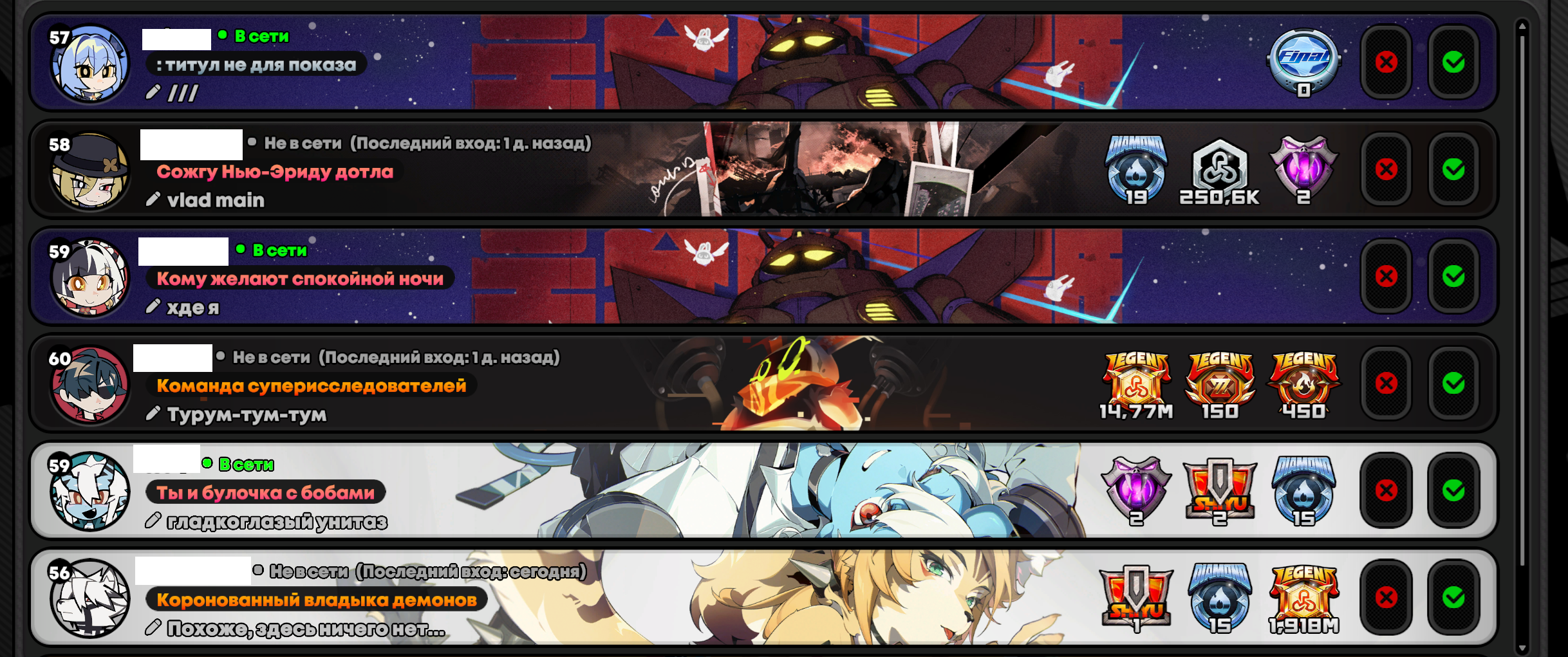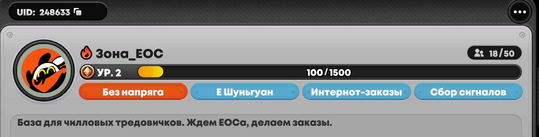 >>6137573 Ладно, раз разраб не хочет чтобы я играл в его игру, то можно просто как 13 летние девочки заходить чисто на понаряжать, забив на все ебаные эндгейм режимы, персов всё равно не дают. Если прохождение всей этой чепухни является обязательным критерием для гильды, то что ж, так тому и быть проветрюсь