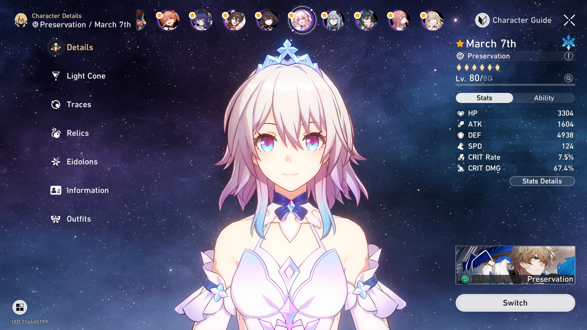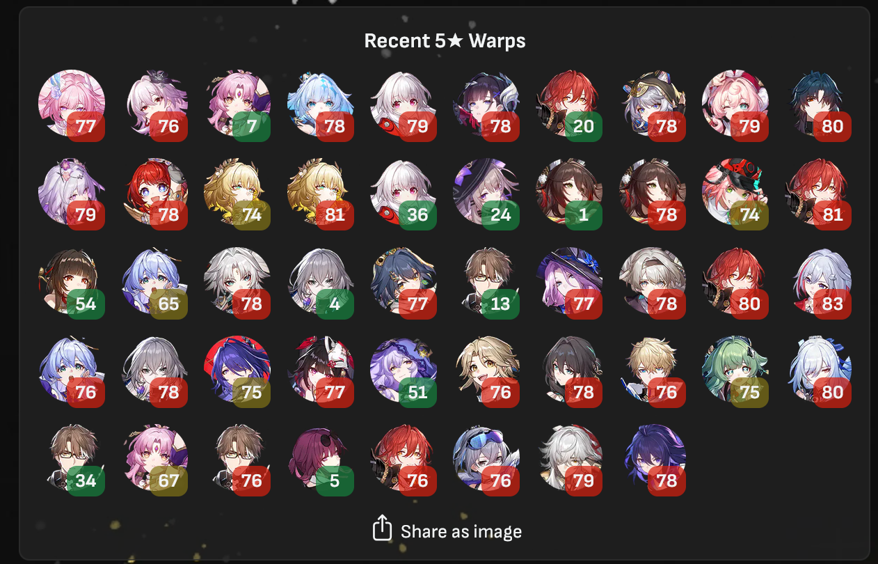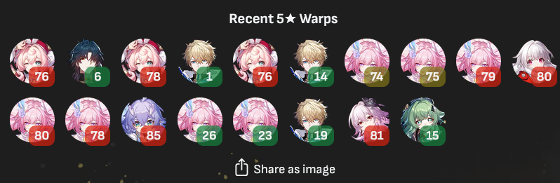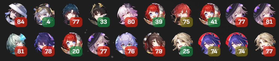 Other than the characters mentioned above, we have: Possibly A Harmony Char (unless they just had to do a ton of testing for Yaoguang, more than we'd usually expect) 2 Hunt Chars A Abundance Char 1-3 Erudition Chars 1-3 Destruction Chars