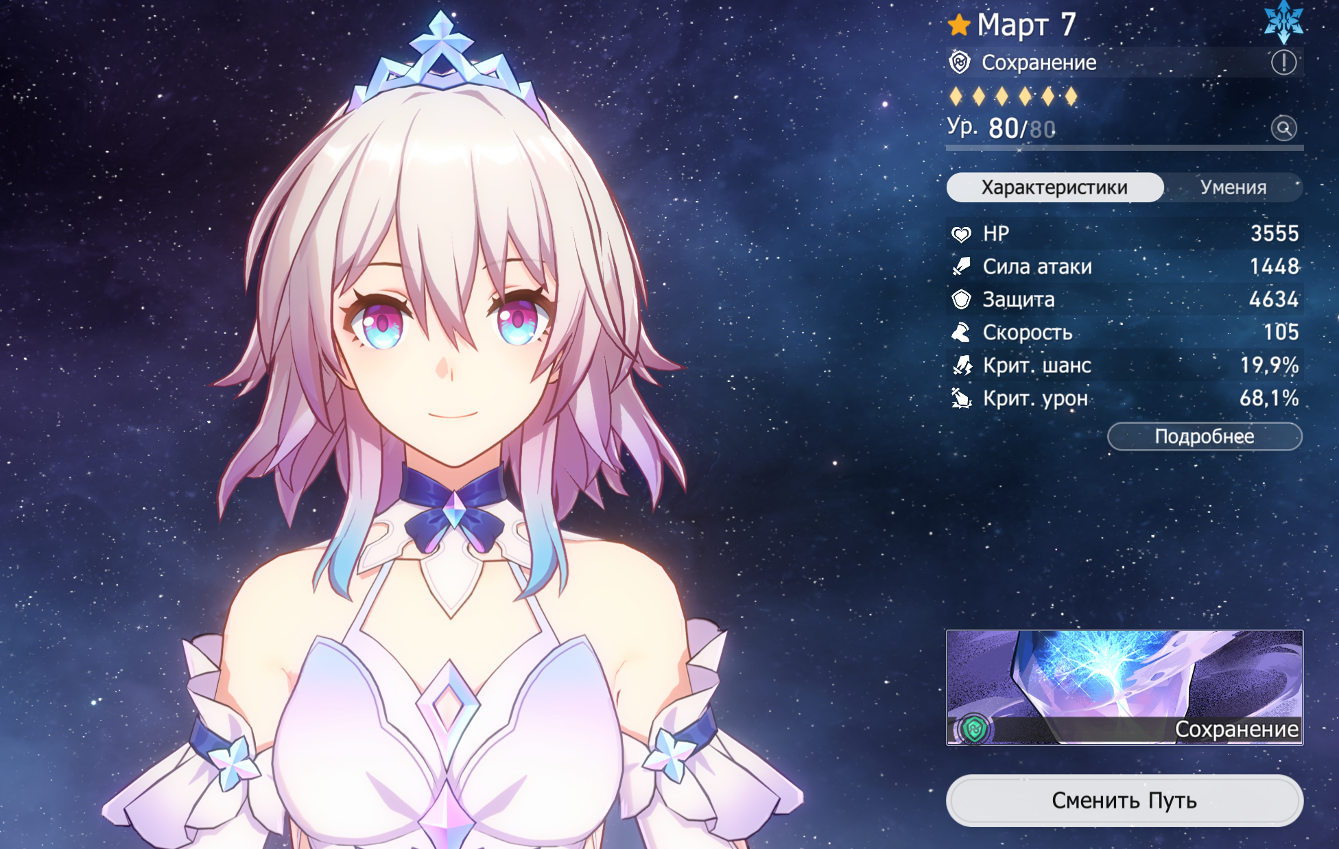 Но вы зачем-то накрутили Снежинку до е6. В общем, если хотите гарантированное прохождение чего угодно ещё на очень долгое время, крутите Гиацине е6. https://www.youtube.com/watch?v=Eead_9p6Q9w