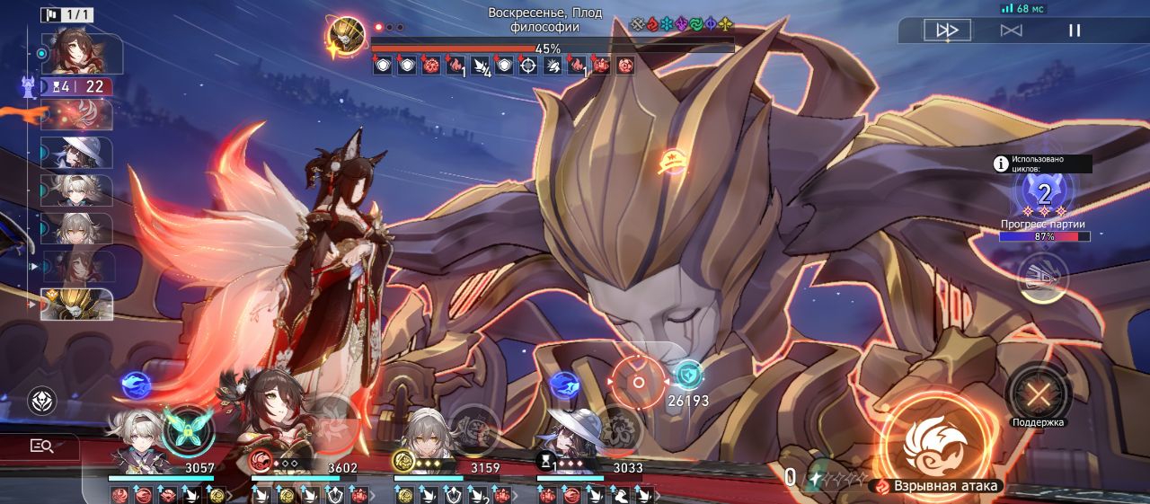 Как же сильна теперь моя Светочка!!! Как же контент под нее заточен! В ф2п пачке с е1 Светой и е0 Жуанькой, Фугой и Георгиной(с волшебной палочкой кощки) она осиливает 2 звезды в арбитре! Кайф!