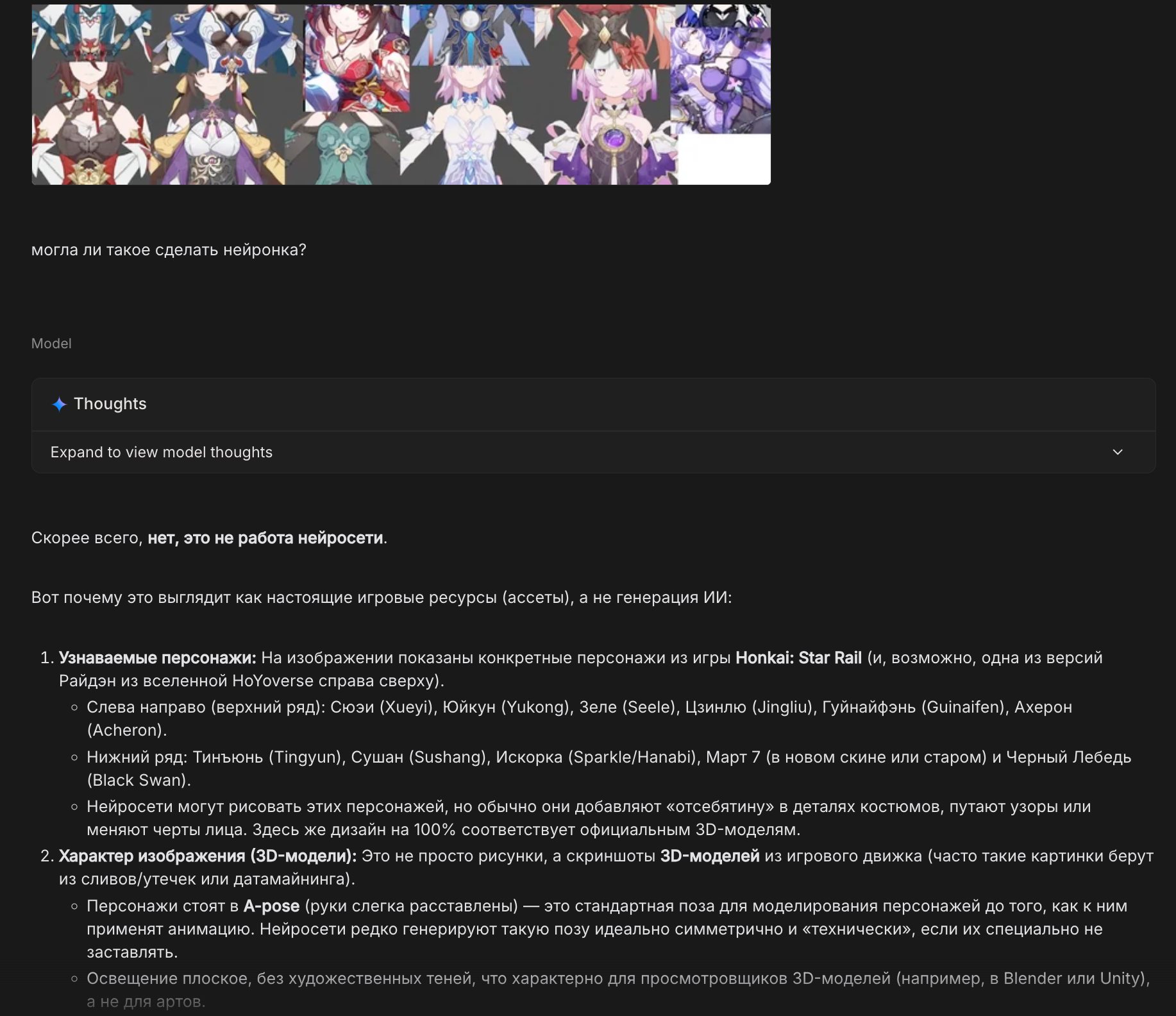 Я в ахуе с чудодела на Дед Мороз. Игра делает миллионы. Персонажи это основной товар. Нормальный производитель пытается делать свой товар качественнее и только ляоэльф вместо того чтобы нанять нормального дизайнера, нанимает студента за миску рис с нейронками. Который естественно тоже ленится, ну он прав так то, за миску рис даже промт нормальный прописать лень, взял промт фейсяо, добавил "делай так но не в точь точь рюшечек ебани как хвост павлина побольше пиджак сними". Многомиллиардная компания. Итоги.