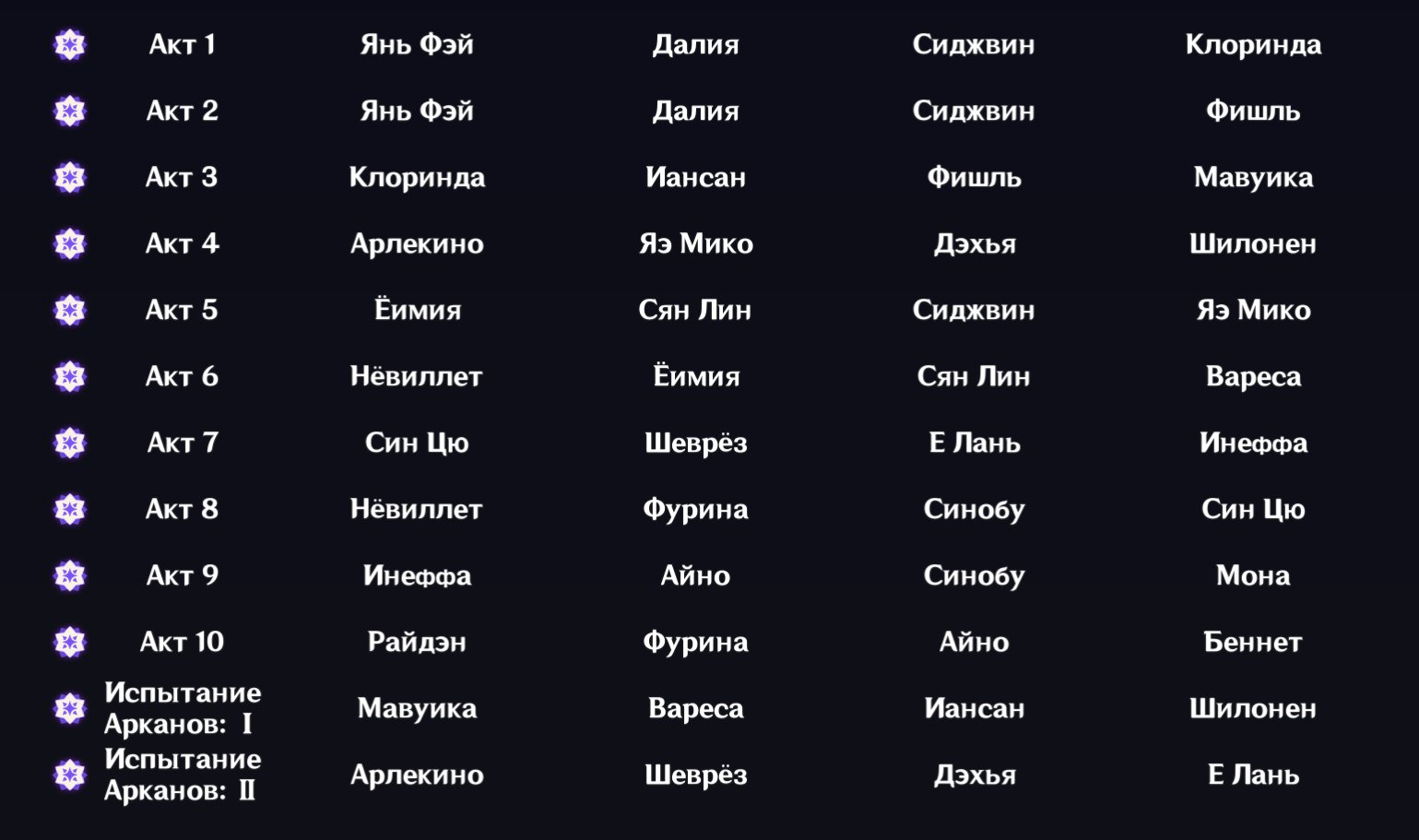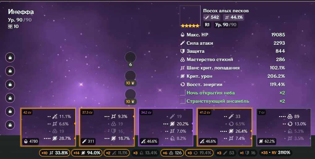 Пресетов артефактов все еще нет, артефактов можно иметь ограниченное количество, на лету пересобирать персонажей пиздец как неудобно и разумно собирать сапов в универсальный стандарт особенно в театр, однако КАЛкуляторщики продолжают предлагать дебильные зато минмаксовые решения который работают только в конкретном отряде с конкретным набором