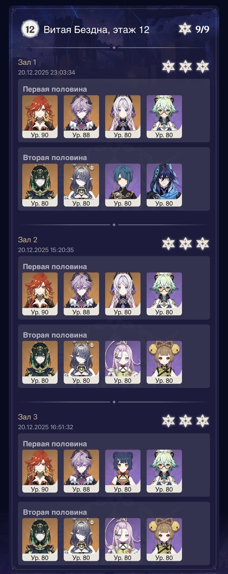 >>6139671 Я не прохожу. Играю с лета 2021, и ни разу не прошёл 12 этаж. Вероятно, потому что: 1) Я принципиально не фармлю артефакты за исключением тех редких эвентов, когда они падают в двойном размере, а таких эвентов на моей памяти было два. А так одеваю персонажей в бесконечные ансамбли и гладиаторы с боссов. Ну и ещё какие-то крохи падают с 11 этажей. 2) Ни разу не выкрутил персонажа за метовость, только за внешность 3) Ни разу не крутил легендарную консту, и первым, пока единственным, исключением стал прошлый "путь совершенства". Консту я выбрал для Шанежки потому что люблю её. Понятия не имею, как она от этого заиграет или не заиграет, да и похуй. 4) Ни разу не крутил оружейный утренник.
