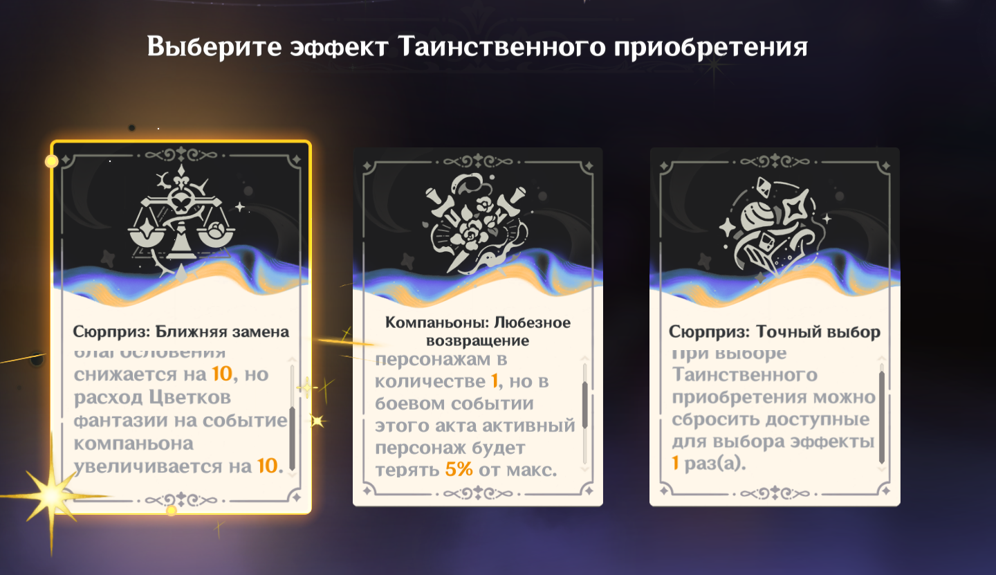 А я один не понимаю, почему никто не говорит, что в театре бесплатные приобретения - это скорее наказания, а не плюшки? Литералли нет никакого профита выбирать ничто из этого чуда, сплошные минусы.
