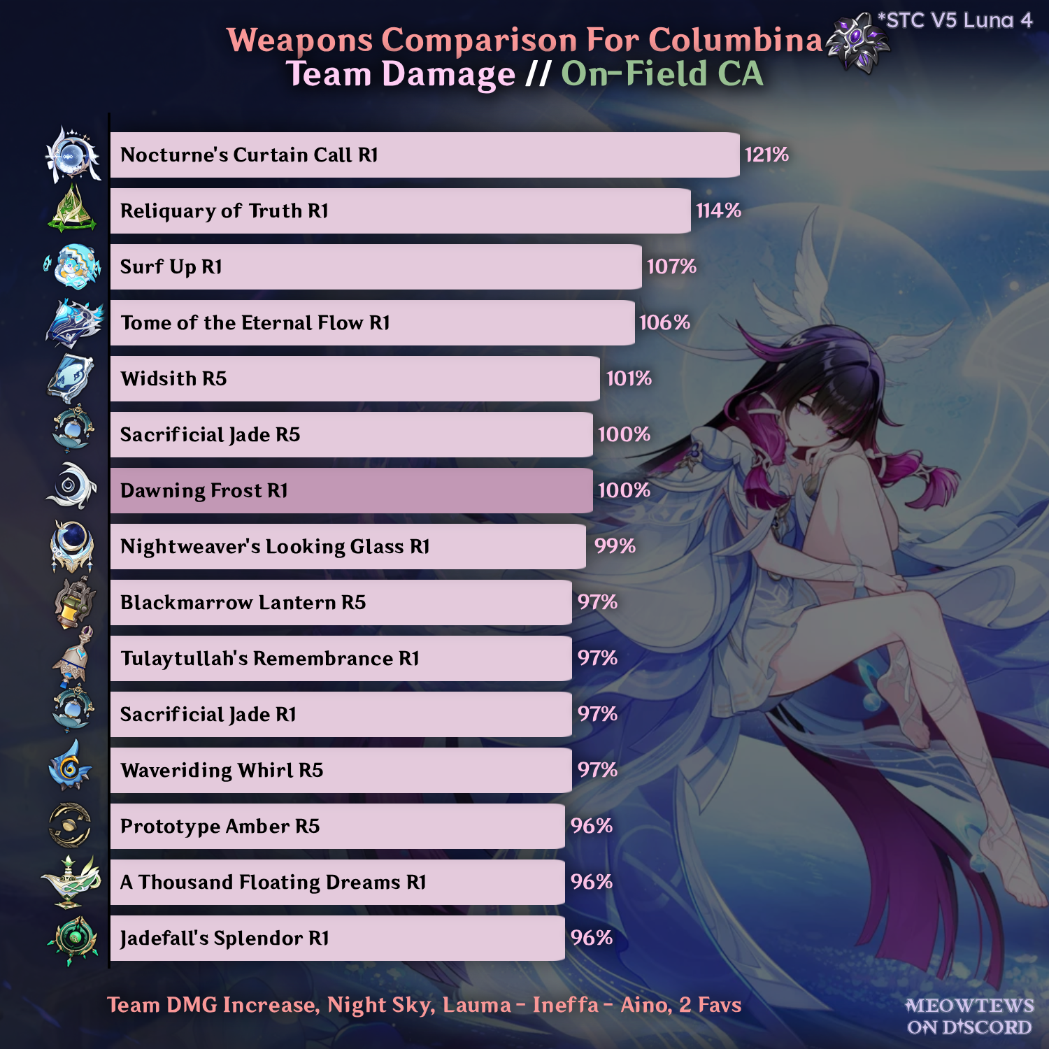 У меня Инеффа под 50к дамажит в обычной ситуации, после баффов - 70к, очень даже норм, Флинс в районе 220к жмет, с Айно и Еланью, без Сахарозы, с Сахаркой вообще 300+, но мне Сахарок не очень, с энергосом хуже, минус дамаг Еланьки. Ну и да, Елань с элегией р2, знатно бустит.