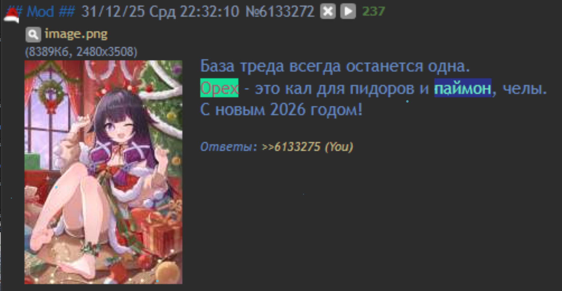 >>6138488 Сейм щит, родной, уже с неделю, наверное, не могу посмотреть всратые ммдшки по Хороводу или видео с хиличурлами и гипертрофированными женщинами.