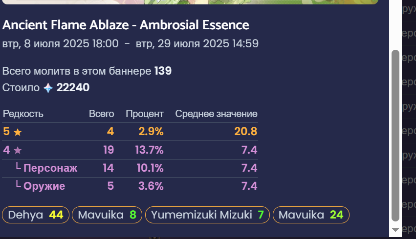 ...И при всём при этом я, например, стараюсь учитывать взаимодействие стихийных реакций в игре, и вайфы прокачаны. Если ты думаешь, что мой подход ленивый, то вот у моей знакомой паймоны на аккаунте всего две леги - Невилетт 20 уровня и Венти 60. Насколько я могу судить, она не знает о том, что Бездна вообще в игре есть. А если и знает, её туда не заманить, прямо как меня в картишки ёбаные. ...А теперь возьми поправку на то, что моя паймона - это ещё относительно увлечённая задротка, в то время как средний по больнице игрок - это какая-нибудь 15летняя школьница, играющая на дешёвом Андроиде. Вот и считай-прикидывай, какие из них безднопроходцы.