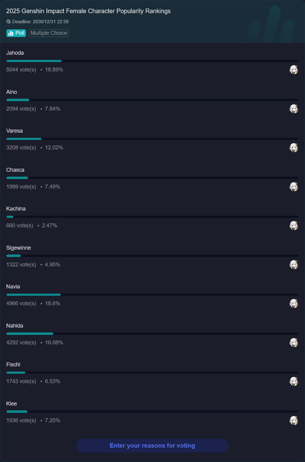 Мысли мнения 😎Итак, наш опрос за 2025 год по Genshin Impact завершён.