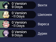По версии выхода: 1.х - 4 2.х - 3 3.х - 2 4.х - 6 5.х - 1 6.х - 4 Здесь мы снова наблюдаем превосходтство персонажей, вышедший во время 🫵Фонтейна. Но также заметно растет текущая версия 6.х.