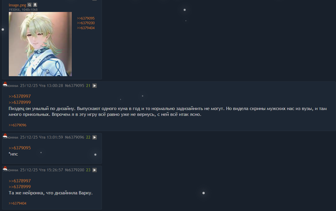 Типо ну давайте объективно, Новогодняя радость класная и ахуенная только относительно других гач, если сравнивать с полноценными играми то кроме графона нихуя из плюсов и не останется, но мне лично хватает я люблю кнопку скриншота поздравлять и еще ради вайф играю + лудомания.