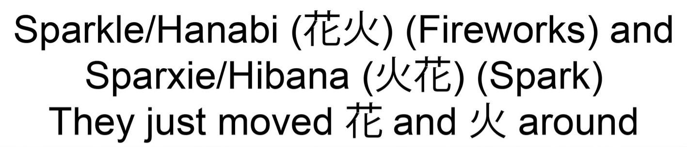 Имя на японском и китайском интересно поменяли, тупо свитч иероглифов, что задом наперёд типа. Но на русском и английском - это какая-то хуйня. На русском тупо укоротили имя, сойдёт, но очень лениво. На английском какой-то пиздец с этой Спаркси. Ну, анлаки для англюсиков.