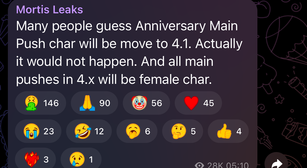 >>6143939 Странно, что не стали переносить мэйн пуш под аннивёрсари. Видимо сюжет уже написан вокруг того, что Сакуру будут продавать в 4.2. Будет тухлый аннивёрсари с мужиками. Подпортила премьерка конечно им тайминги.