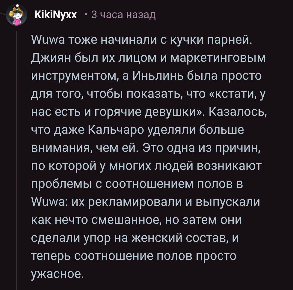 >>6154997 > Трехнедельные вайфу заебали. щёлкнул пальцами Во, это та формулировка, которую я искал. Я скажу честно, всю сюжетку Чисы я смотрел вполглаза. Да, симпатично всё выглядит, милая девочка со сверкающими ланьими глазами, юшки как из ведра льются под деревьями сакуры. Но бля, когда ты понимаешь, что в следующем Новом году эти моменты затеряются во времени, как слёзы в дожде будут отброшены в сторону просто потому, что нужно тебе новую девочку впихнуть... И так оно и оказалось: "как хорошо, что ты здесь, я очень переживала, ну ладно, это всё здорово, но мне пора бежать". Может, я уже устал от гача-формата и пора дропать.