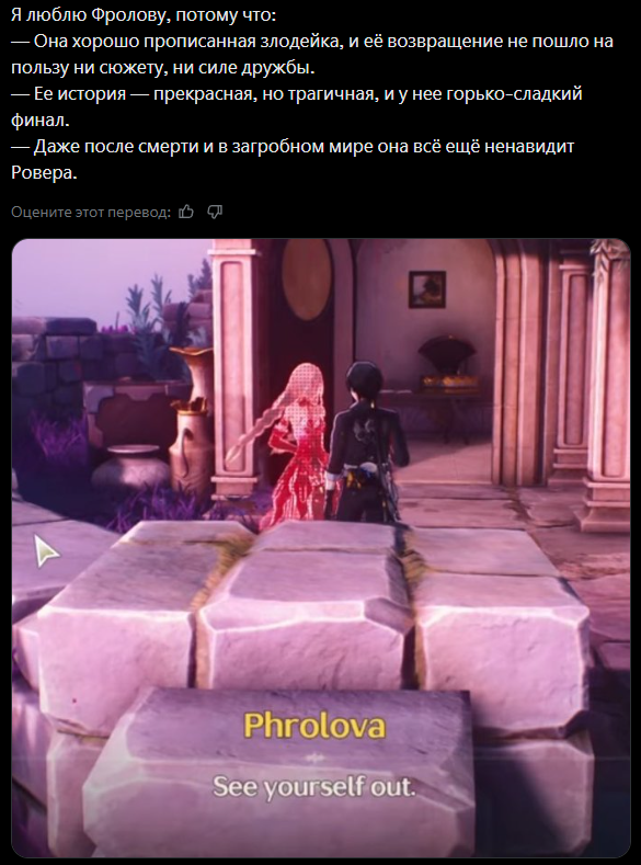 >>6159012 Это реально. У меня только пикрил был от этого, остальное уже забылось со временем. Но я тогда совсем в ахуе от этого лора. Как Ровер запечатлел конец предыдущий цивилизации, если в 1.0 писали, что он с амнезией проснулся, перед тем как опиздюлить краунлесса и основать Цзиньчжоу? Внезапно все снова узнал-познал и дединсайднулся.