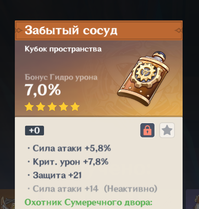 Сейчас артоданж ковырял, ну так, просто решил немного смолы посливать. И тут чисто случайно выпадает такой кубок. Я глянул - ахуел, даже глазам не поверил. Превосходный кубок золотой труппы, прям под Фурину, всё как надо. С гидро уроном в верхнем стате, с крит уроном в нижнем, ещё и сила атаки. Каеф. Я чуть из штанов не выпрыгнул, так обрадовался... а потом увидел, что это нихуя не золотая труппа.