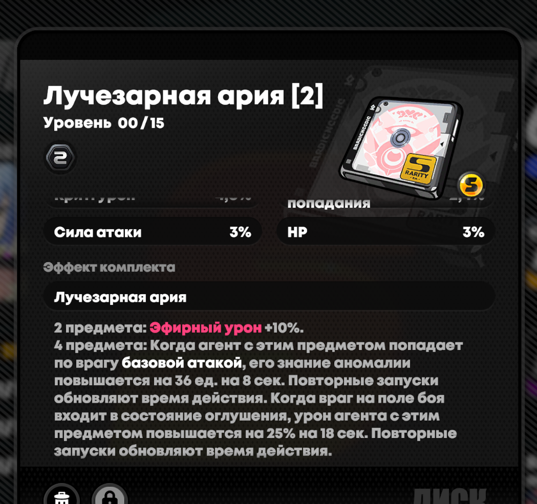 Уж сколько дисков из Миябного сета на других слотах запоролись. Осталось немного дисков на 6-ой. Первый пошел, нах, +3 защита сразу. Многообещающе. Заипусь одевать собачку. А еще надо ее личный сет выфармливать