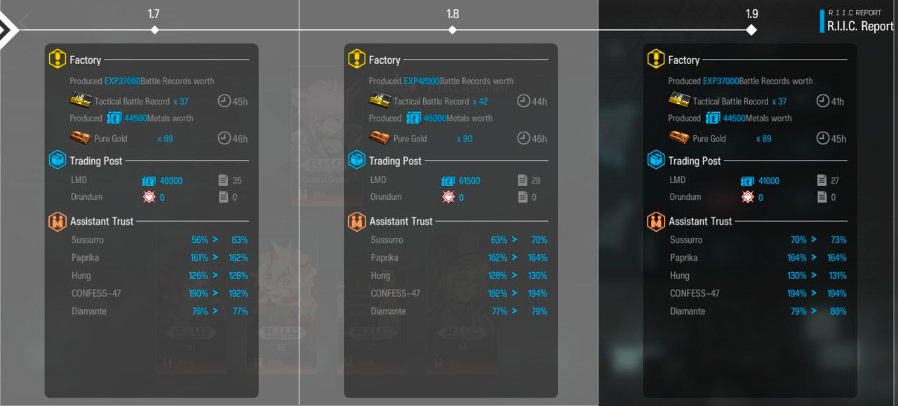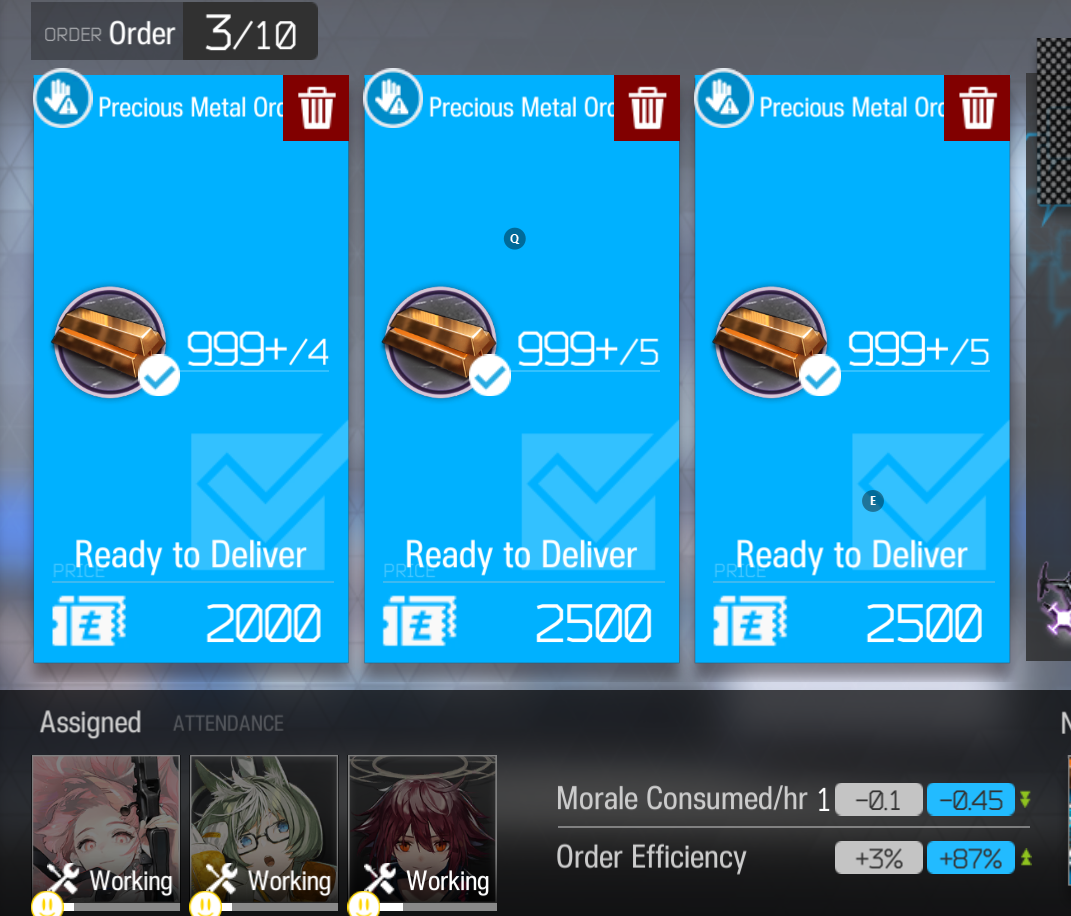 А ещё можно сделать прикол и поставив Гладию в штаб с р6с отрядом расставить всех других рыб на заводах, +40% каждый охотник работает, в одной комнате вместе могут иметь максимум 90% эффективности, но вот с другими ограничения нет, при этом они универсальные и работают даже с орундум крафтом кусков