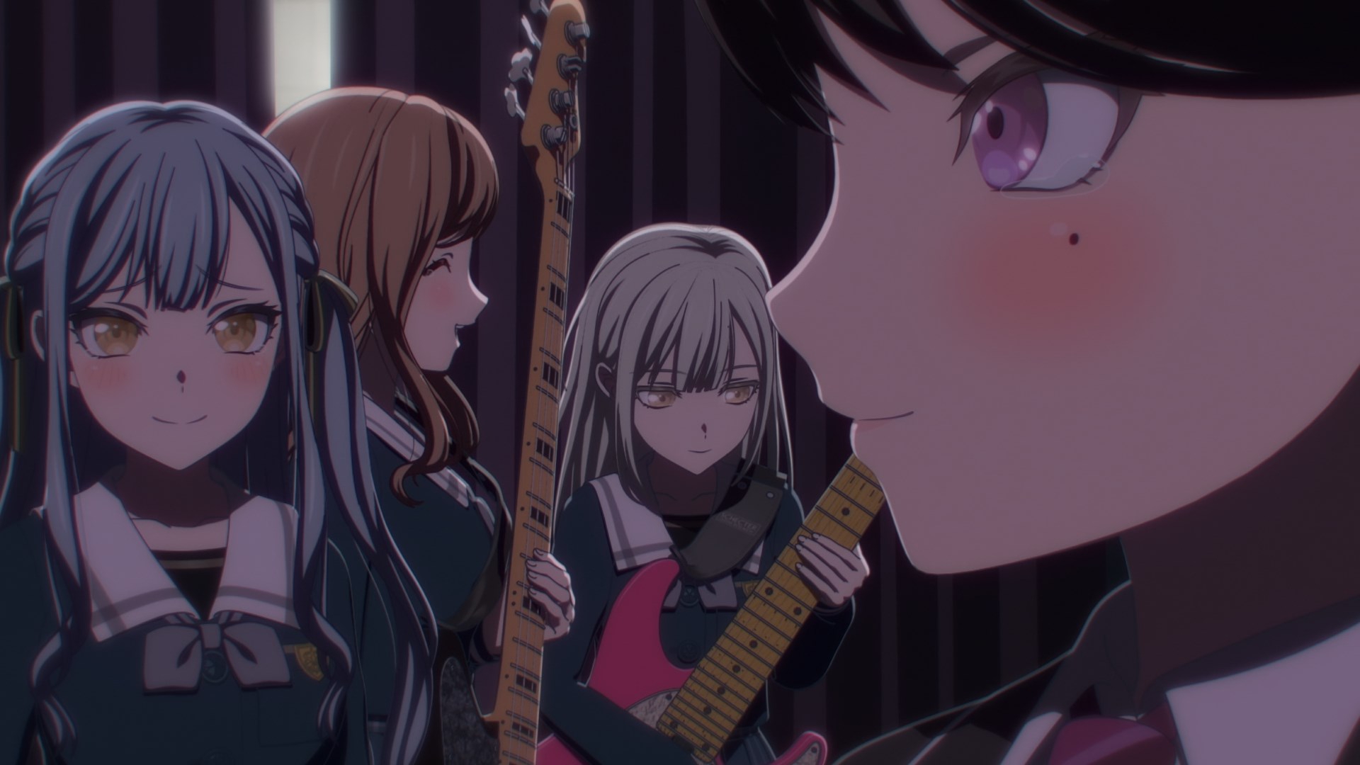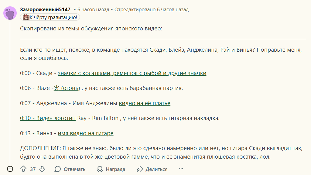 Барабаны точно Блейз. На басу риба какая-то, Скадичка поди. Хз кто на клавишных. На гитаре Винья (там вишнёвые волосы). На вокале и второй гитаре Нимфа.