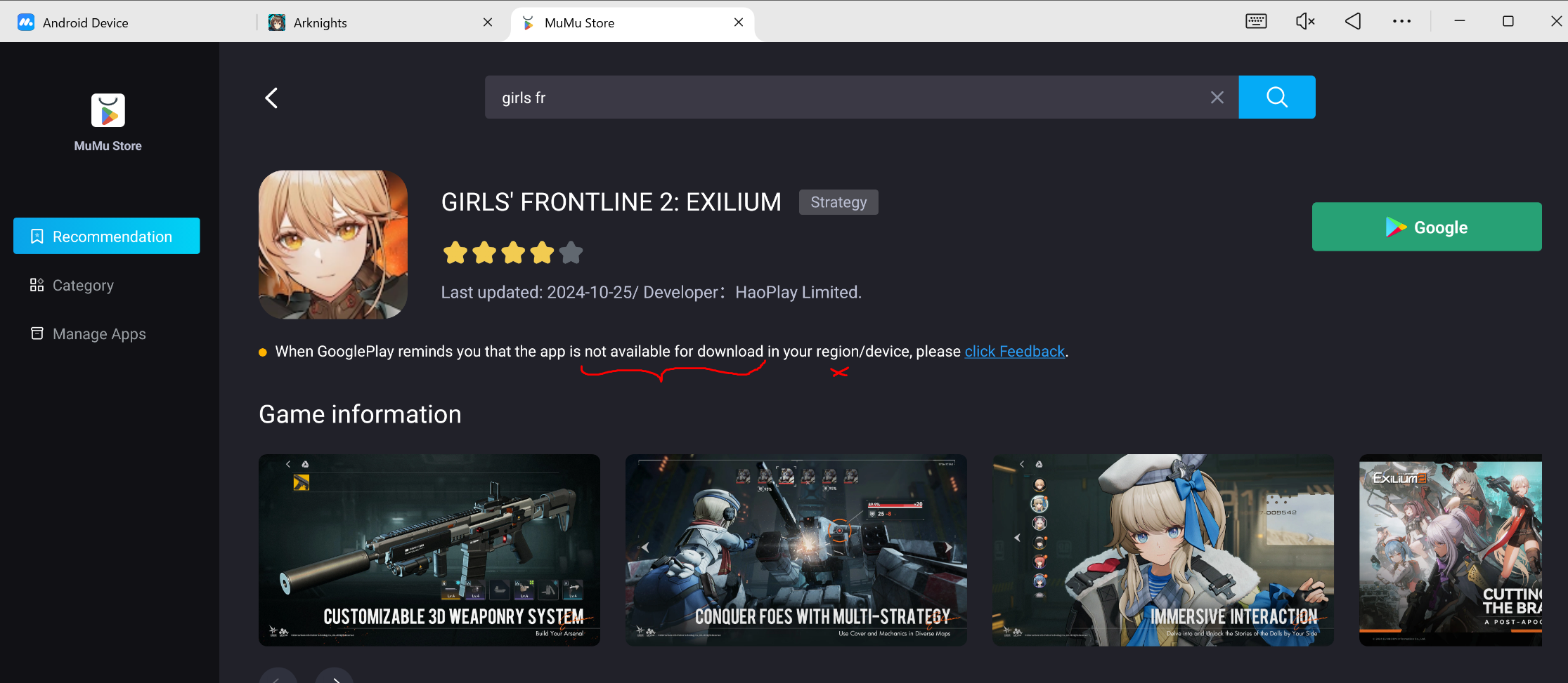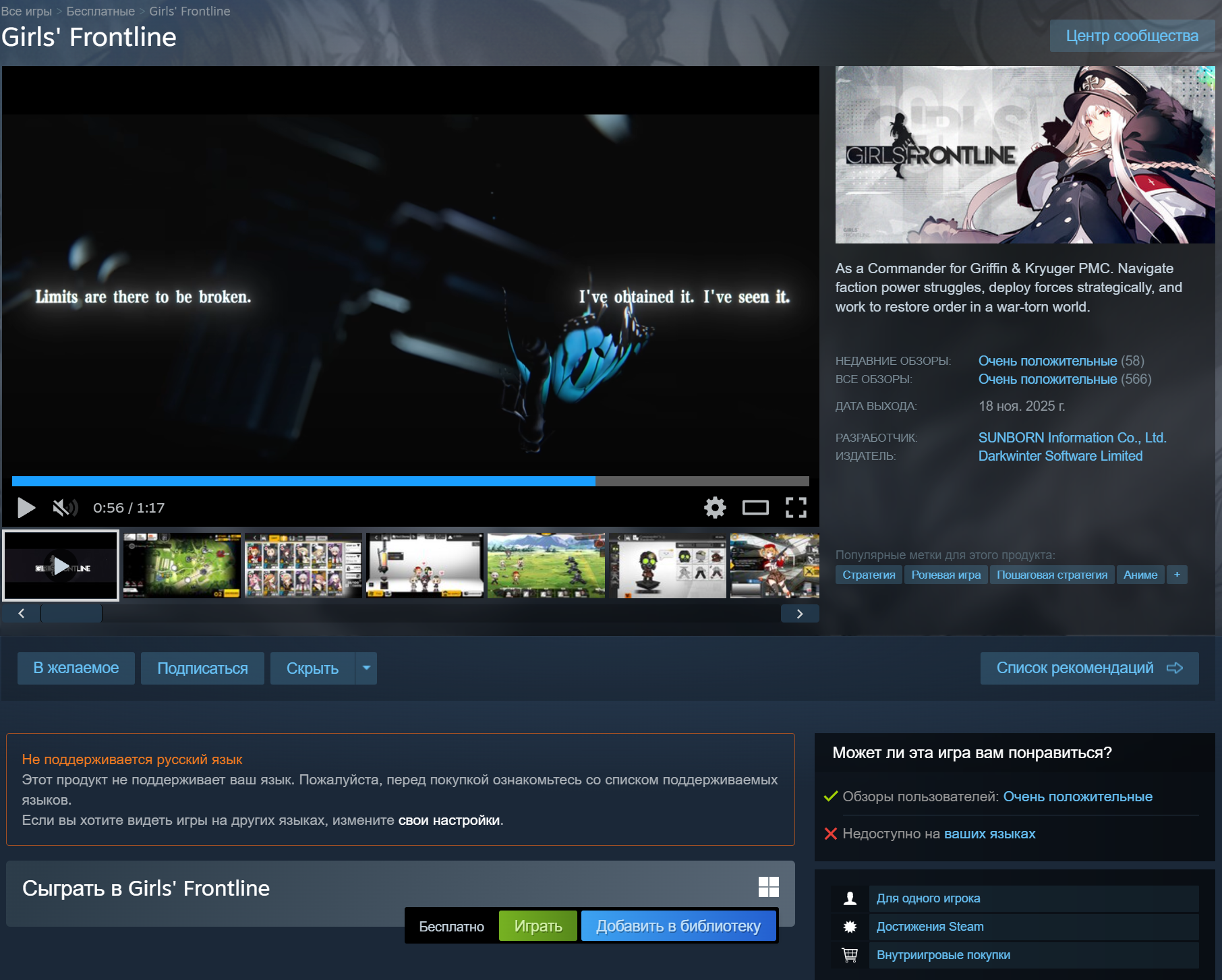 >>6215374 Я карочи так и не осилил инсталляцию — на ПК серваки Амазона залочены, тут "Недоступно в Вашем регионе" — не хотят меня видеть в своих Галз ФронтЛайнах, когда в Аркнайтс есть доступ без проблем, а в Ендфилд вообще русский язык и официальный развал на Игромире. Ну и ладно.