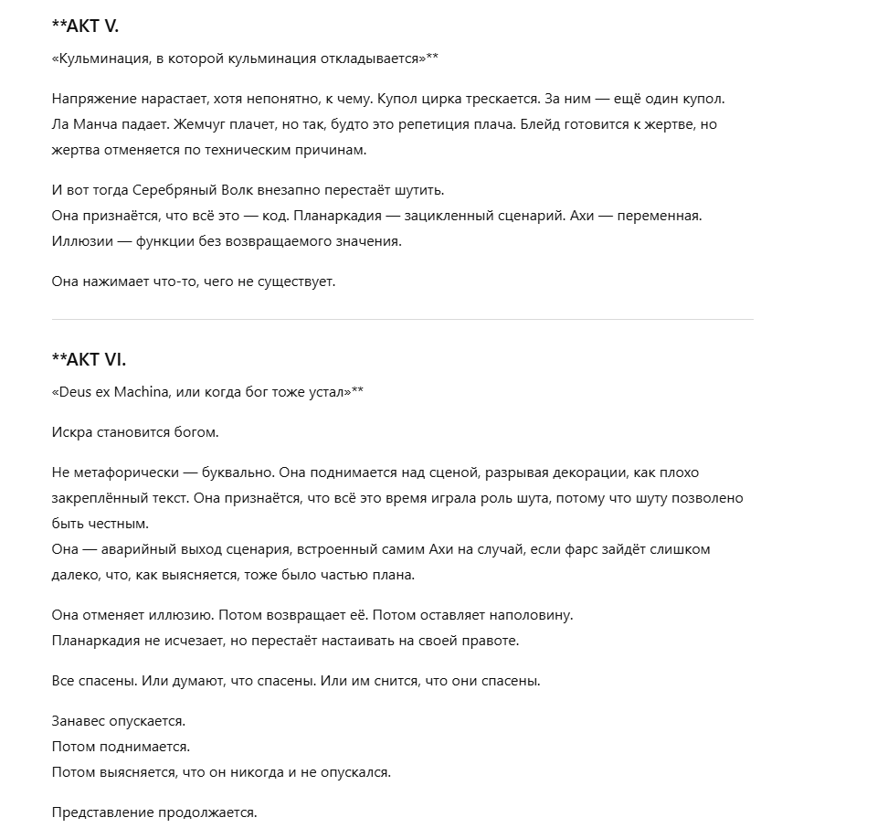 >>6184278 Оригинальная Вита была учёным в говне мочёным. Её гениальный план убил всех кроме неё в противостоянии хонкаю. По итогу она сама решила стать хонкаем, заменив его. Создала кучу клонов, суть которых была находить миры, внедряться в них и подготавливать для пожирания ею. Постепенно в одном из клонов скапливались остатки её человеческих чувств, от которых она сама избавлялась на её пути к божественности. В конечном итоге клон восстал и перенял контроль над всей системой. По сути это можно считать её же перерождением, если так подумать. Теперь она как анти-герой и трикстер бедокурит во имя собственного развлечения и всеобщего блага по совместительству. Что-то типа того.