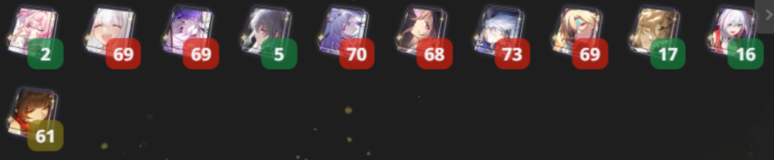 >>6188736 Я завтра попробую пофармить материалов на Асту и её там расчехлить. А так Юзал Яшму, Герту куклу, её 5* версию и и Трибби, но у босса остаётся что-то около 14-20 поинтов до смерти окончательной и сдуваюсь