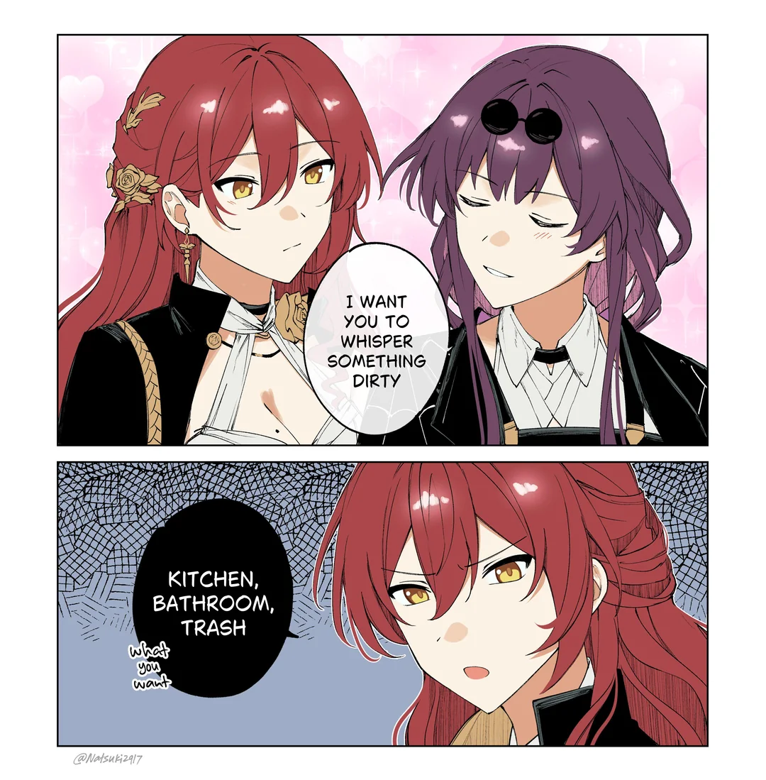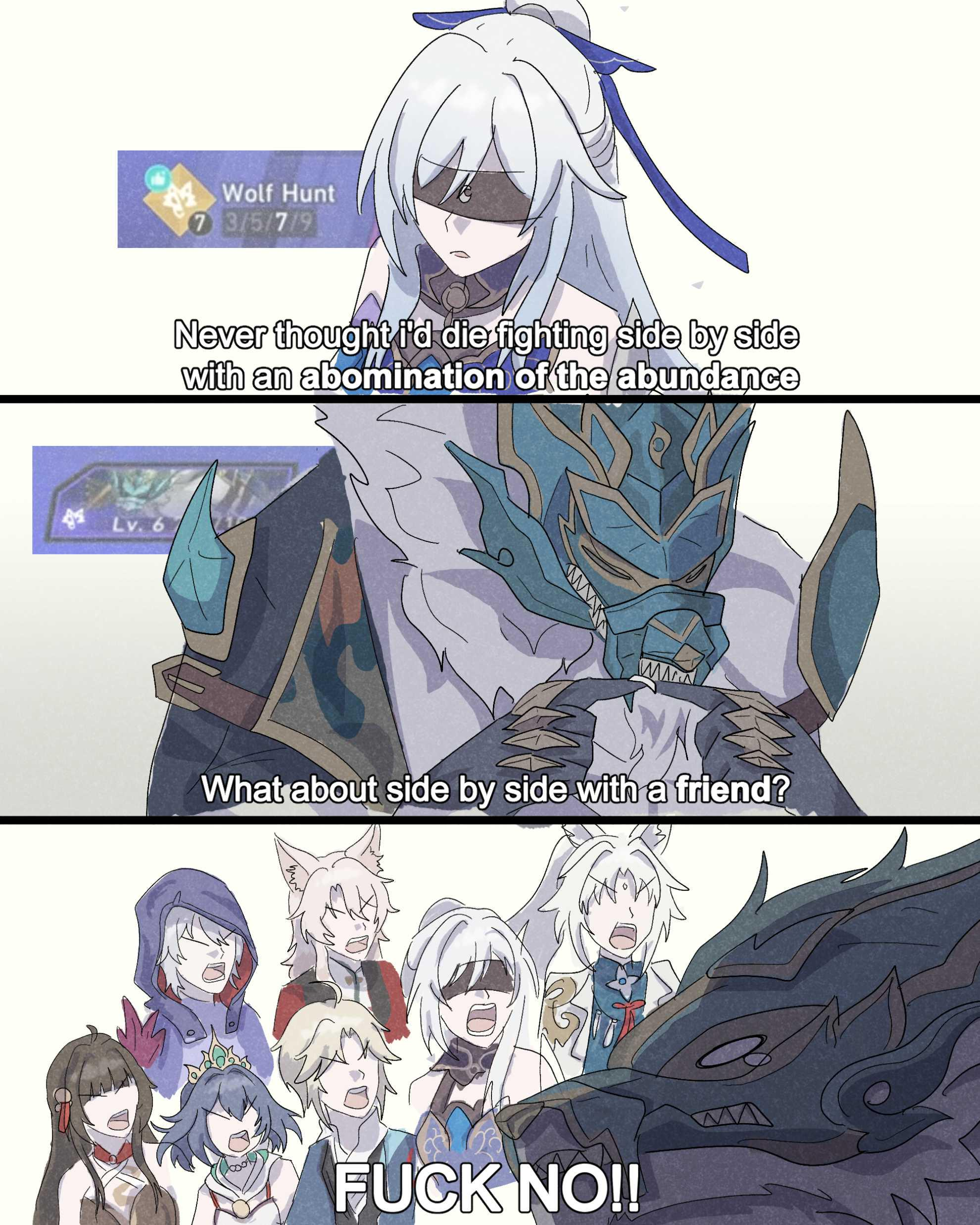 Посмотрите какая красота, оригинальный чарактер с оригинальной романтической линией, пока тут хонкальные дегроды по типу калоджи пытаются впихнуть древний хонкал выдуманный тупыми школьниками в нормально прописанный мир, попутно продавая своих пластиковых пожилых хрюлизий