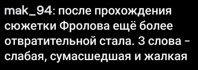 Даже он понял, если вы понимаете о ком я. В ближайшем расписании Вувы пока не видно, так что подведу итог. Топ по подаче - арка Лупы. Топ по сюжету - арка Фроловы. Последняя приятно удивила концовкой. Оказывается, можно делать вещи, которые традиционно любая гача игра избегает. И даже вышла почти адекватная "серая" мораль. Почти, потому что многие мотивы персонажей до сих пор не раскрыты. А Ровер мразота, кста.
