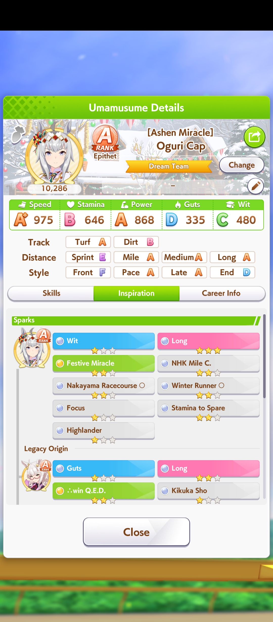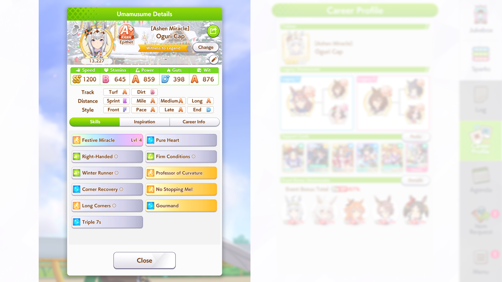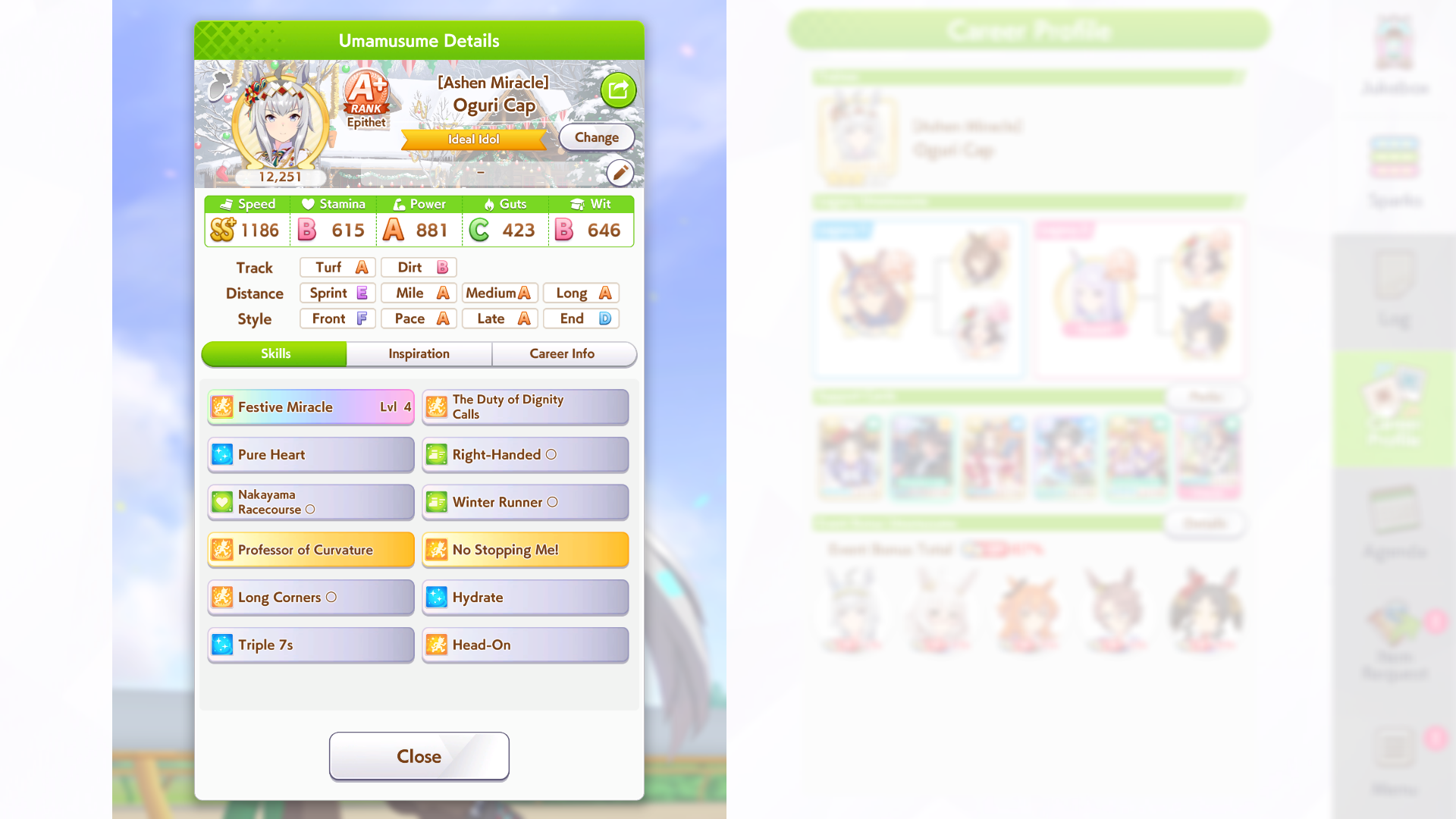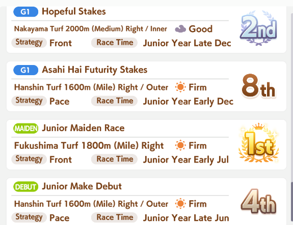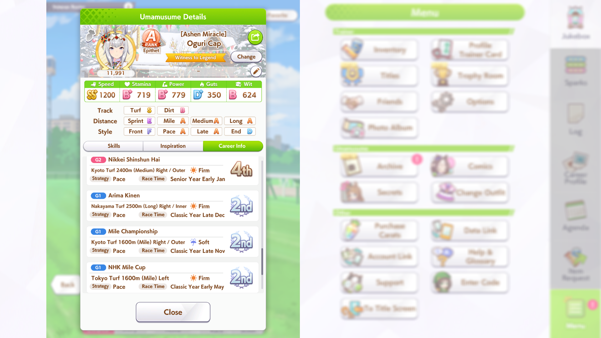 Я играл 4 последних дня только Огури. 12 ранов. Всегда получал секретную награду. Иногда она может проебать Хеншин, но там 2-4 место, это поебать, так как тебе надо 3к фанатов, а с них набивается. Пару раз второе место было на осенней миле перед Арима кинен.
