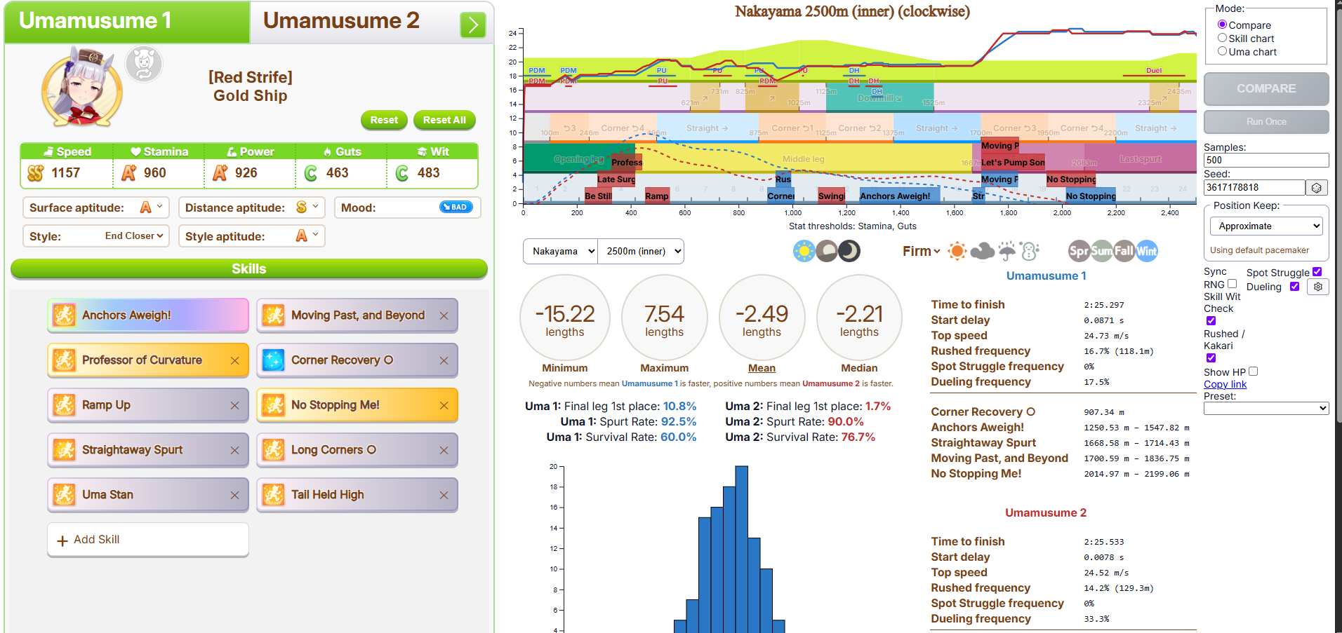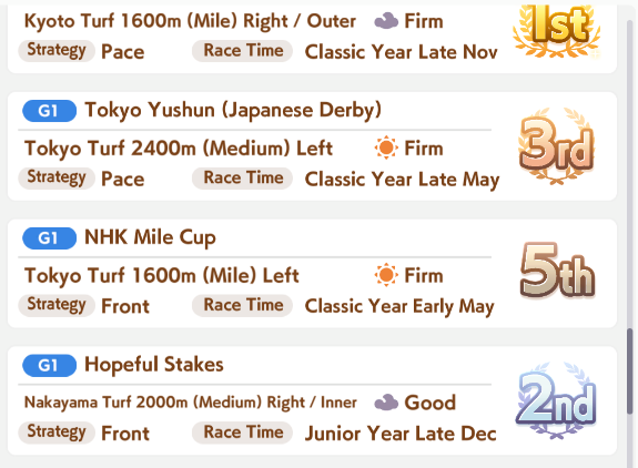 >>6182880 А как фиксить бесконечные лузы на G1 гонках, даже не то что допах, а карьерных? Подгорает уже от того что она и дебют и NHK лузает, но там же ещё как-то надо сейвово набрать под 60к набрать перед майл СМом и Аримой в случае если она там третьи места возьмёт. Скрин ещё одной лузающей всё Огури в пример