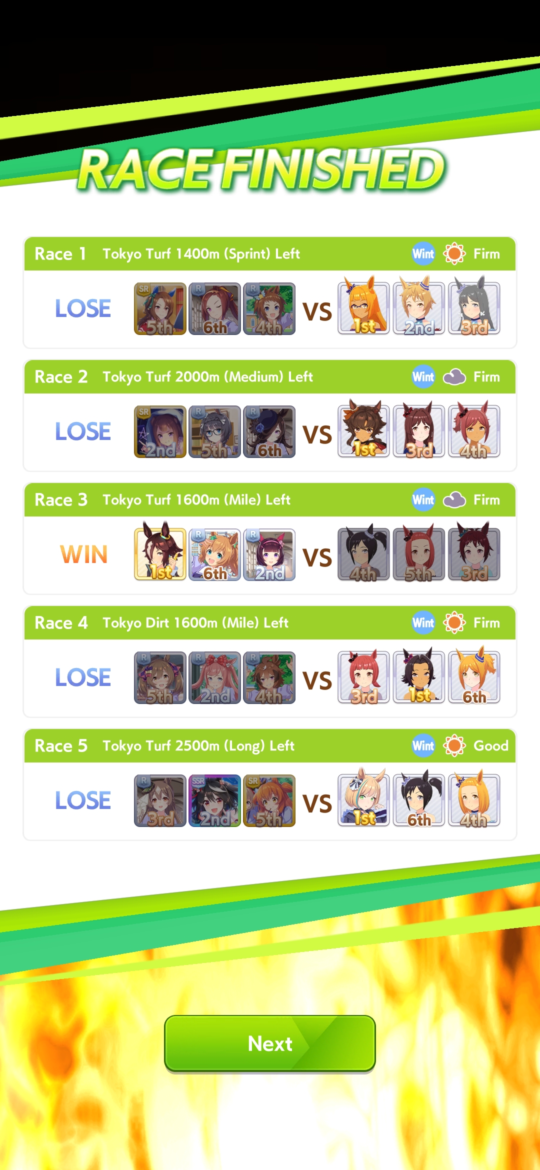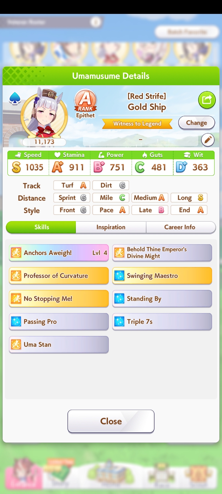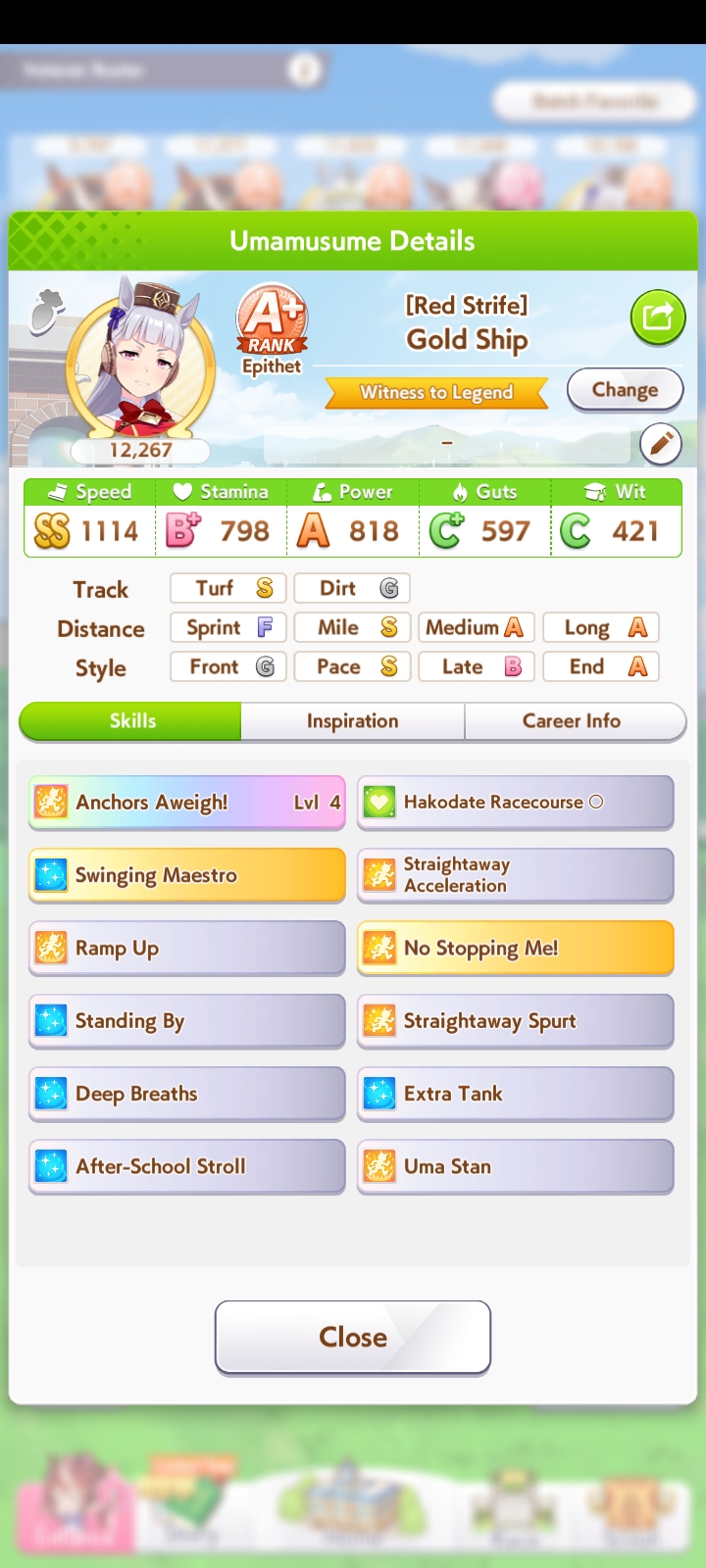 Правда бегал в основном мили в кубке не смотря на Ски, стамины ей всё же чистой малова-то. Но всё выиграли без проблем только один раз вроде лузнула. Вообщем, не зажимать ей стамину и гатс в самом начале и будет всё плюс минус норм. Ты идёшь онли спид-вит как на бакушине, конечно она будет лузать без ульты то. Попробуй с Урарой поиграть или что там у тебя на Гатся есть, может легче должно пойти.
