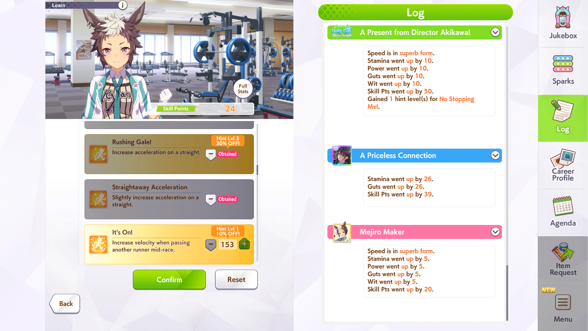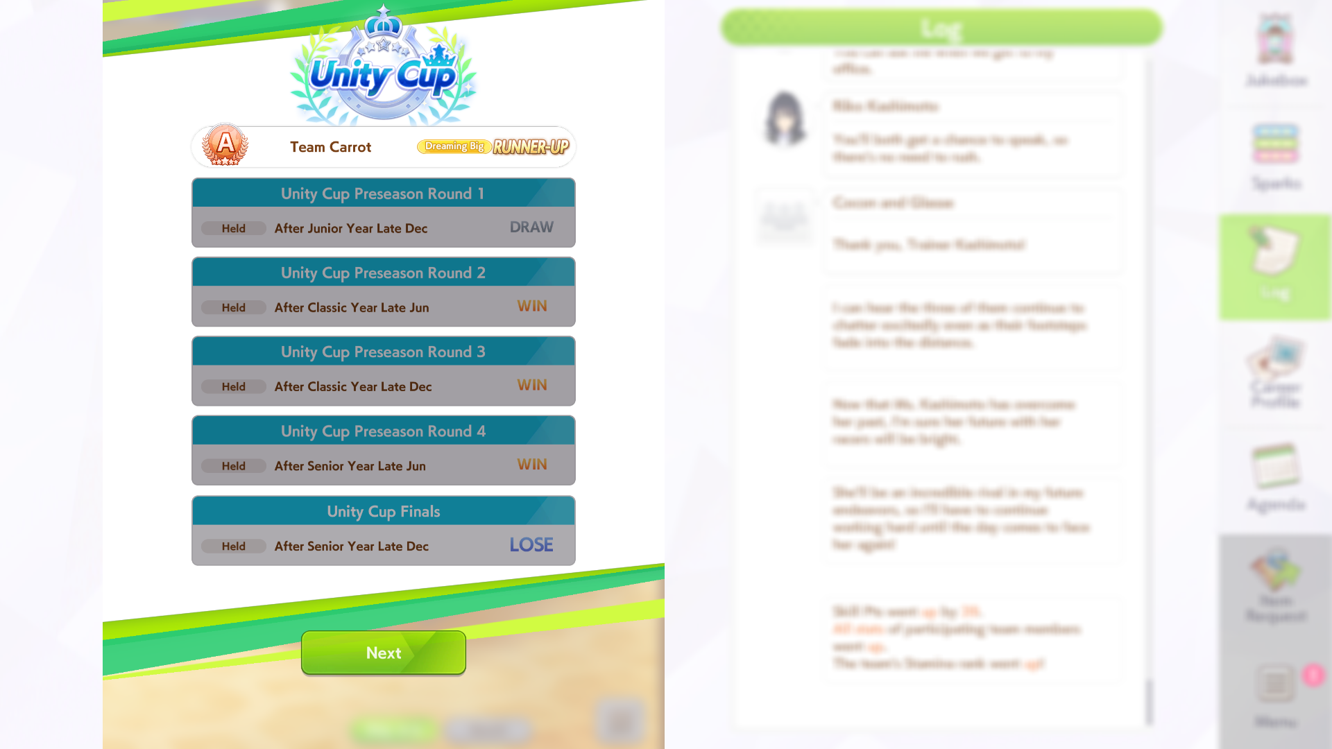 Поэтому пришлось играть без этих карт. По ощущениям, проходить карьеру Хары Урары в разы легче. Наверное дело в картах, но если взять другие, то шансы пройти тест стремятся к нулю, потому что не будет нужных скилов.