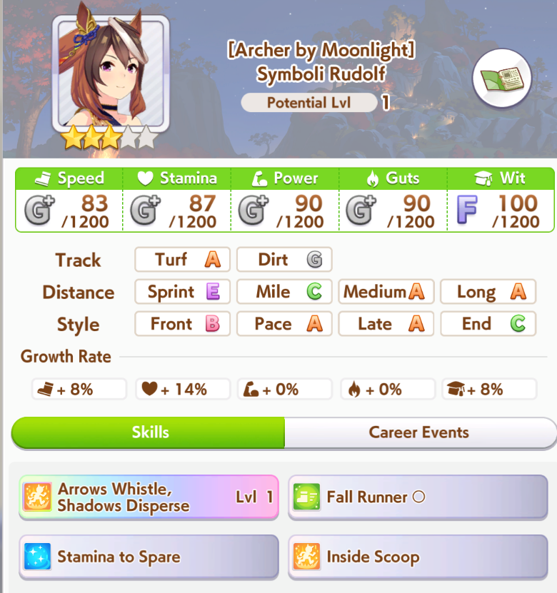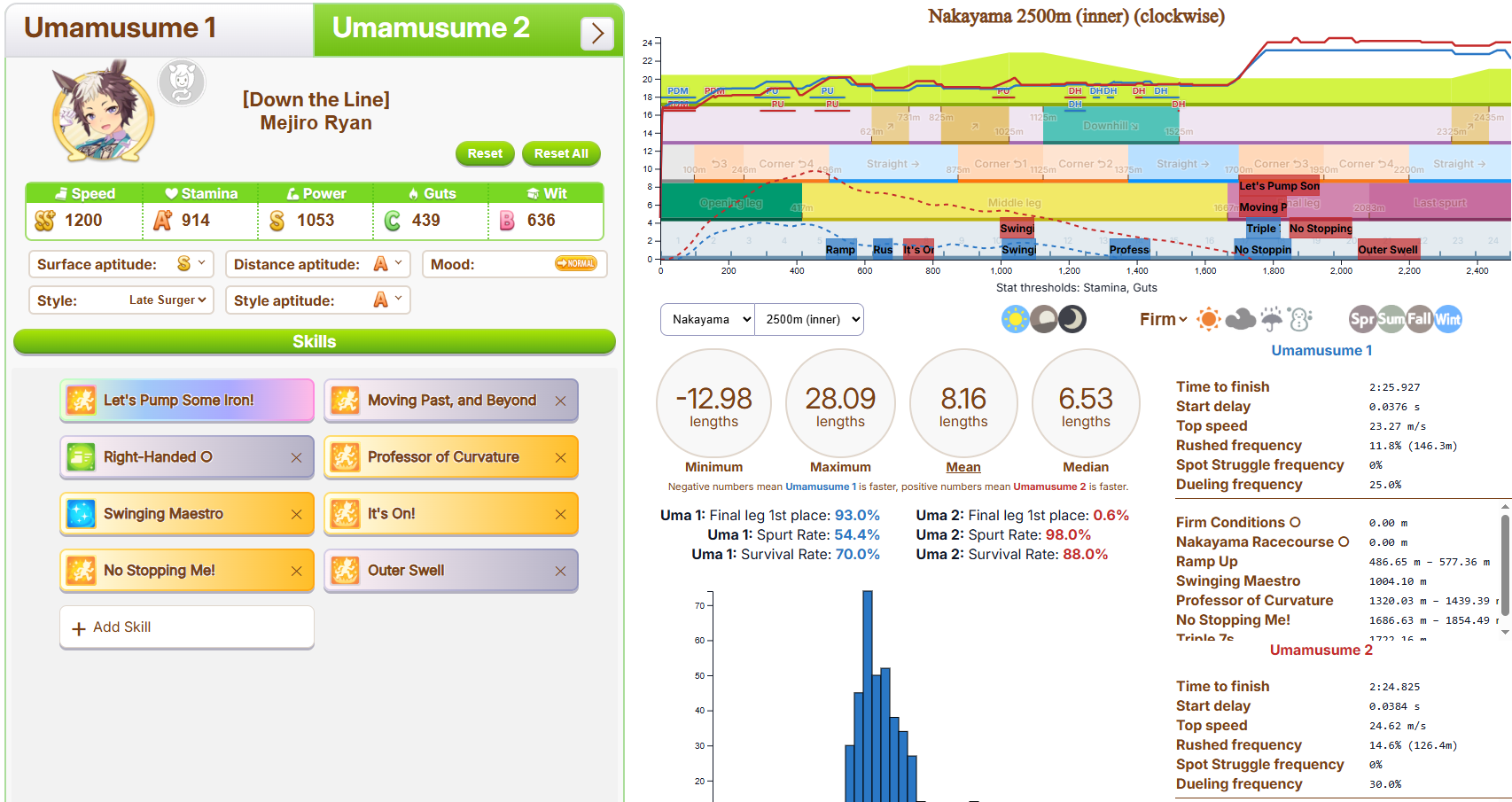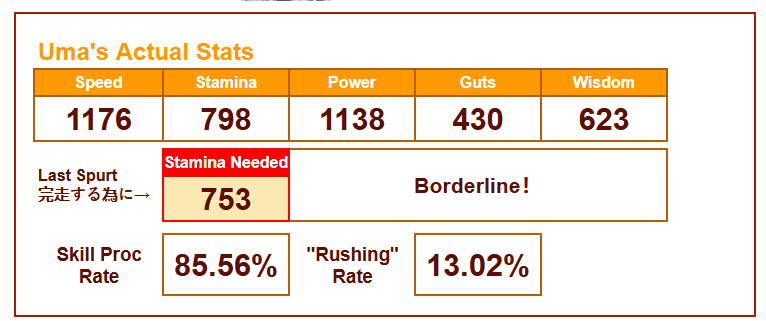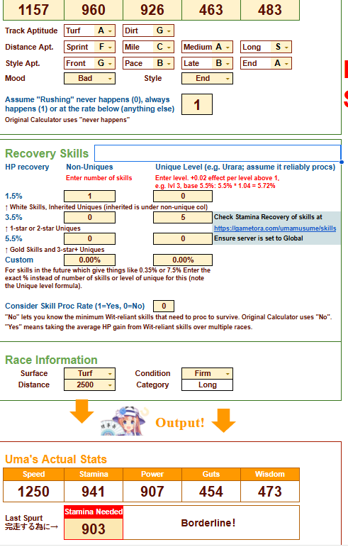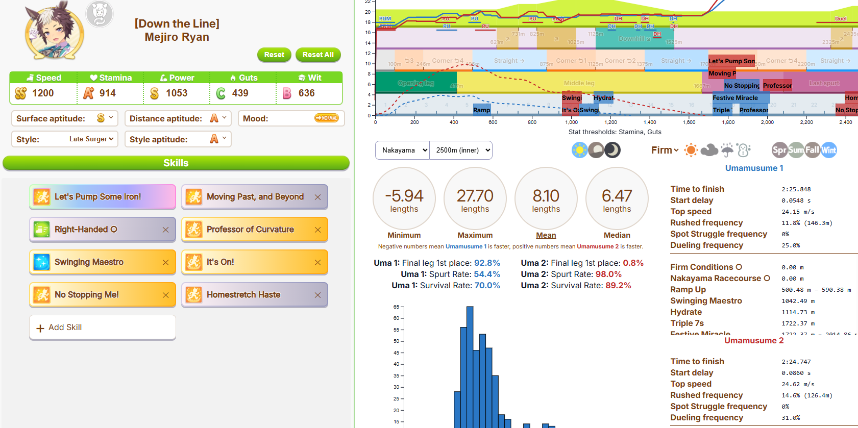 >>6248225 Говно. Минимальный набор - 1200 скорости 800-850 стамины + голд рекавери + спурт + нсм, без него выигрывать она не будет. Дохуя павера не нужно, 800-900 тебе хватит сполна, без лонг S жить можно, против пива она и без него будет выигрывать.